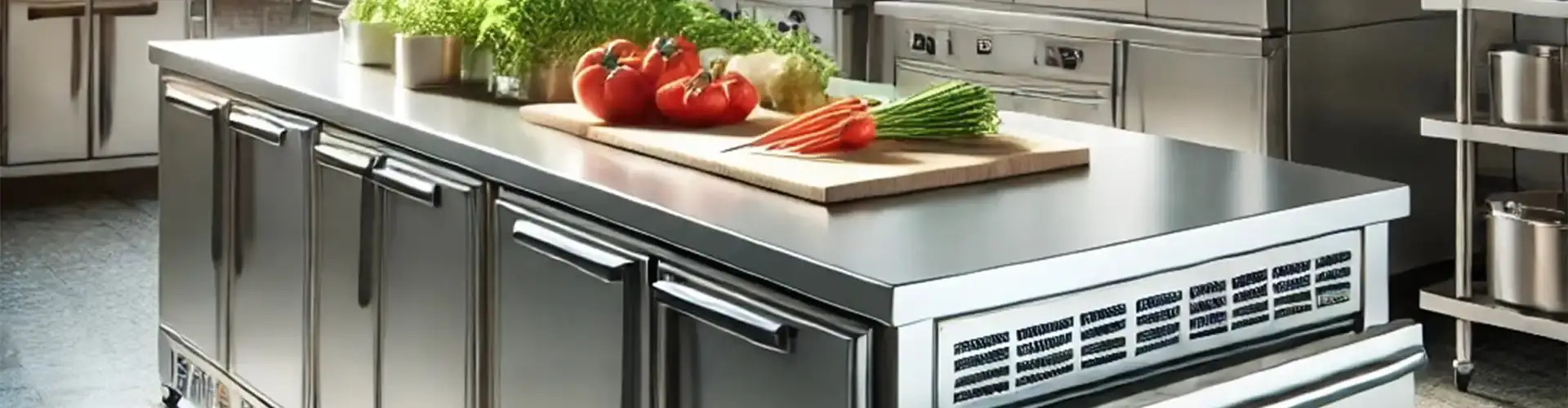 Masă frigorifică cu 3 uși cu blat din sticlă, V 402 l