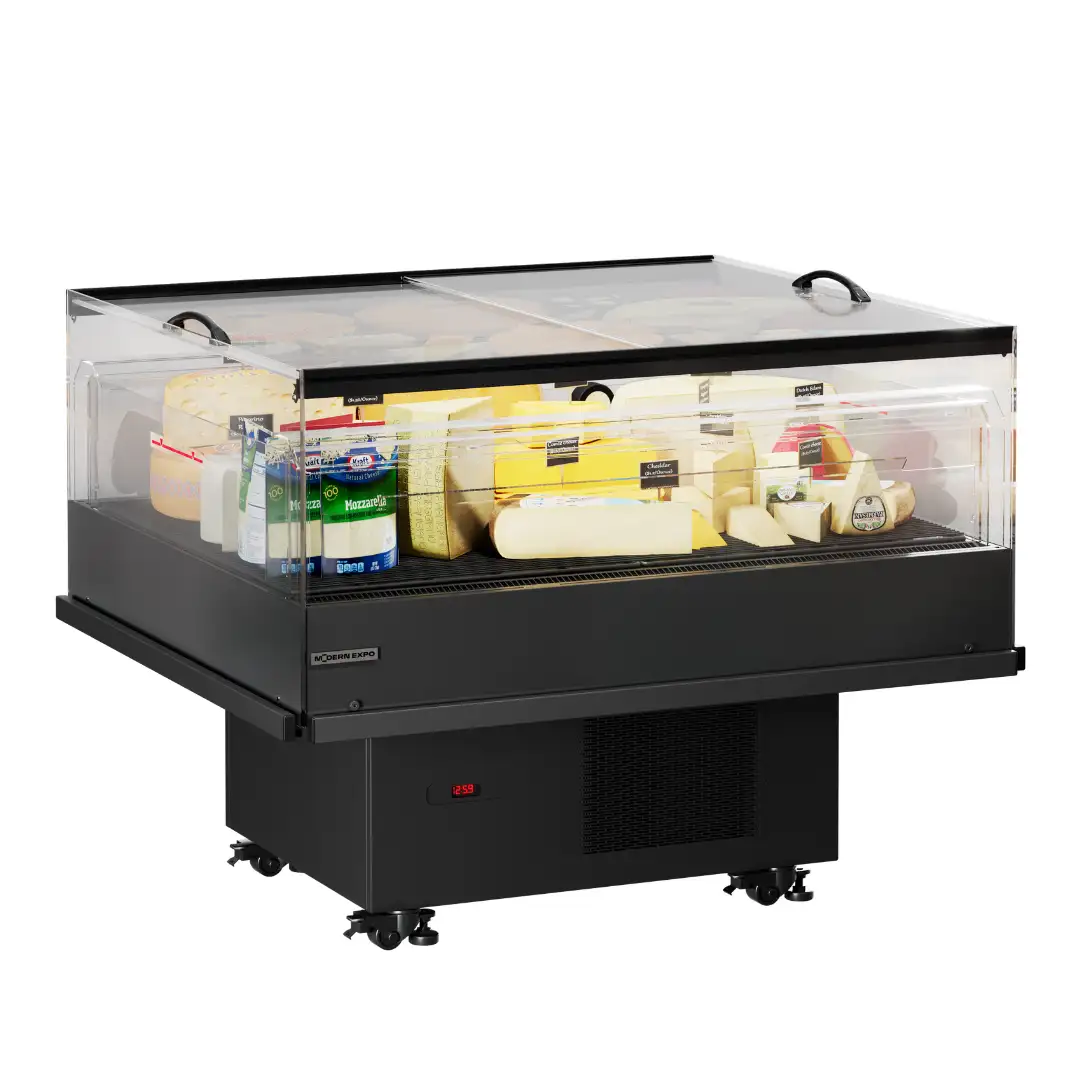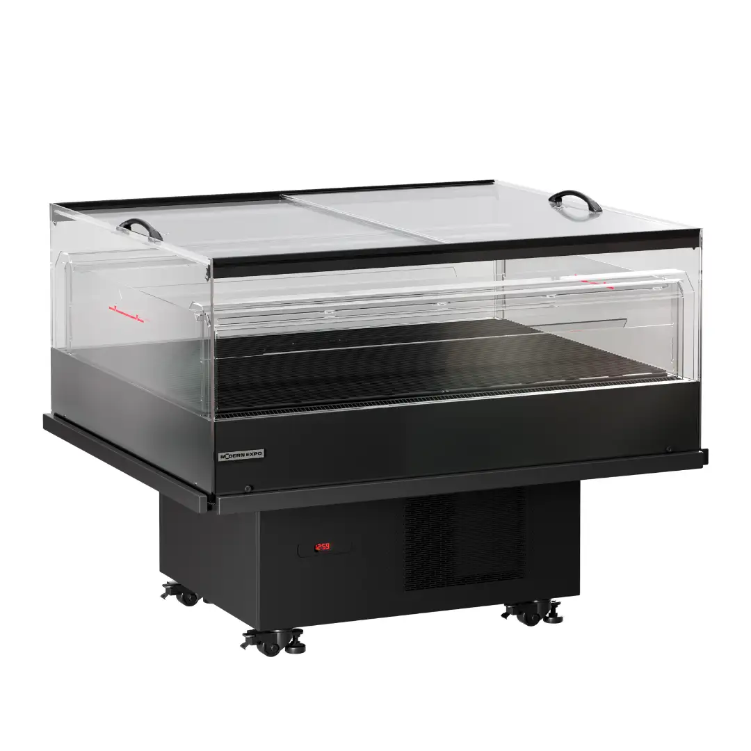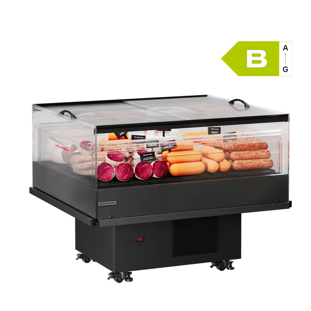 A sturdy refrigerated showcase perfectly suited for promotional products and maximum visual exposure. High-performance commercial refrigerator ensuring durability and reliability. Promo professional refrigerators are essential equipment for storing and optimally displaying products at controlled temperatures.