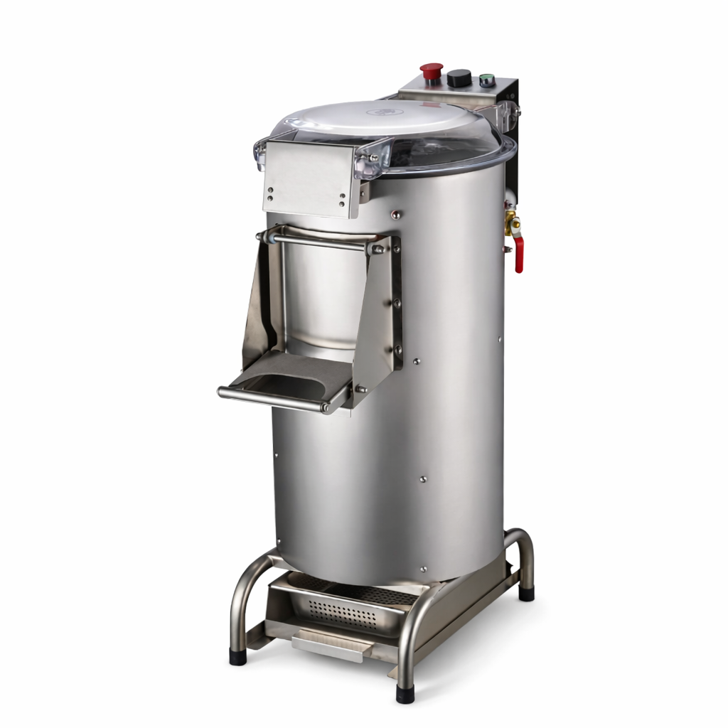 The LINKRICH potato peeler features an easy-to-load bowl and an abrasive metal disc for thorough cleaning.