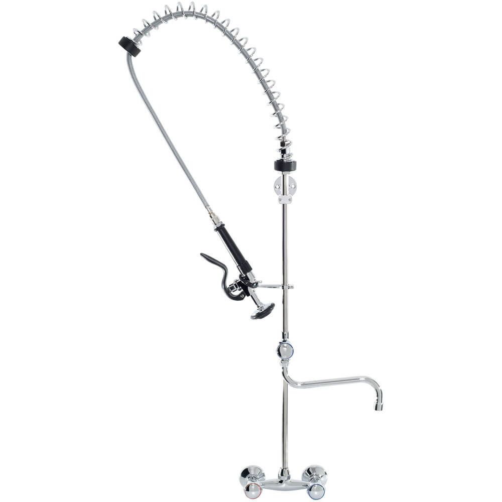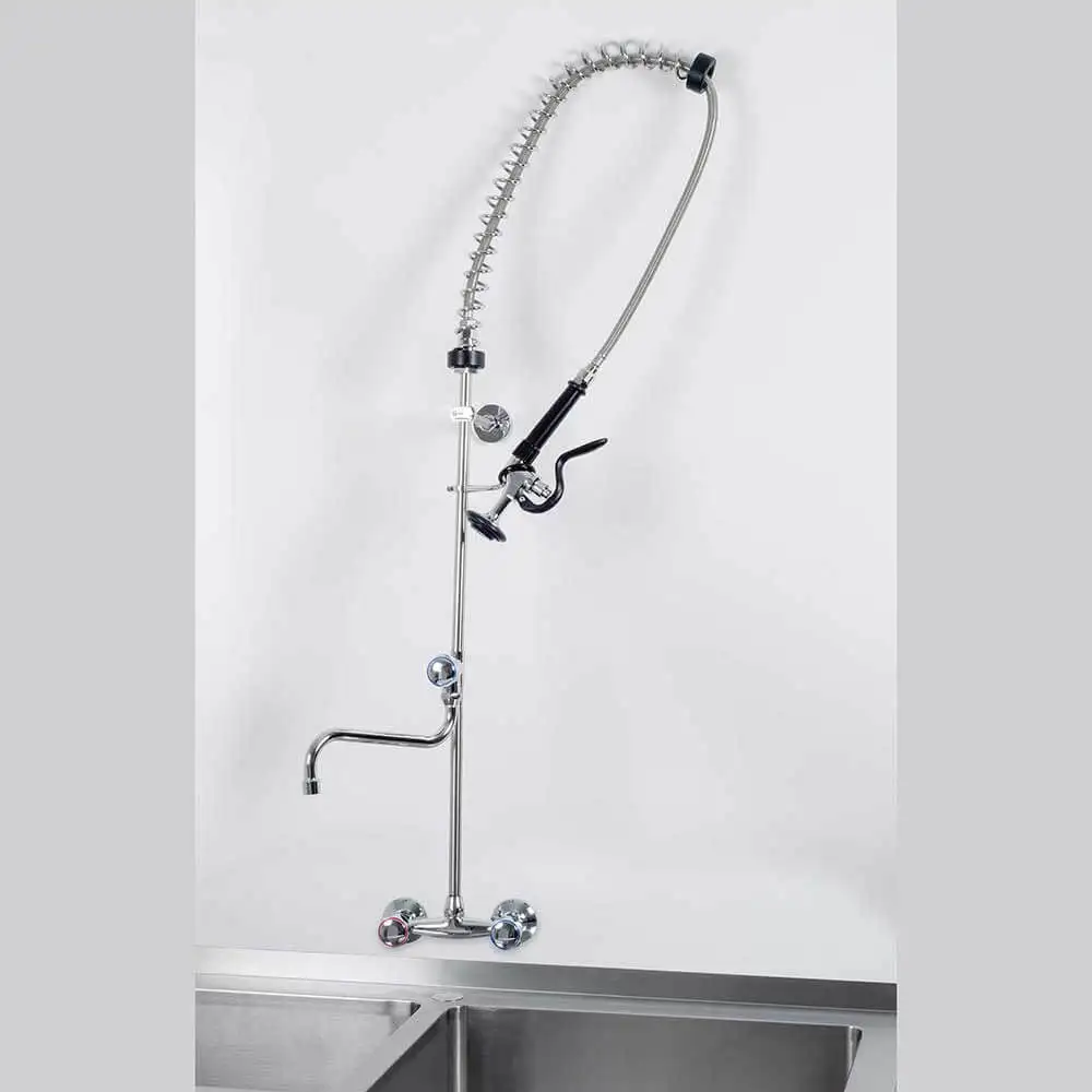 Professional faucet with flexible shower and fixed spout, wall-mounted installation