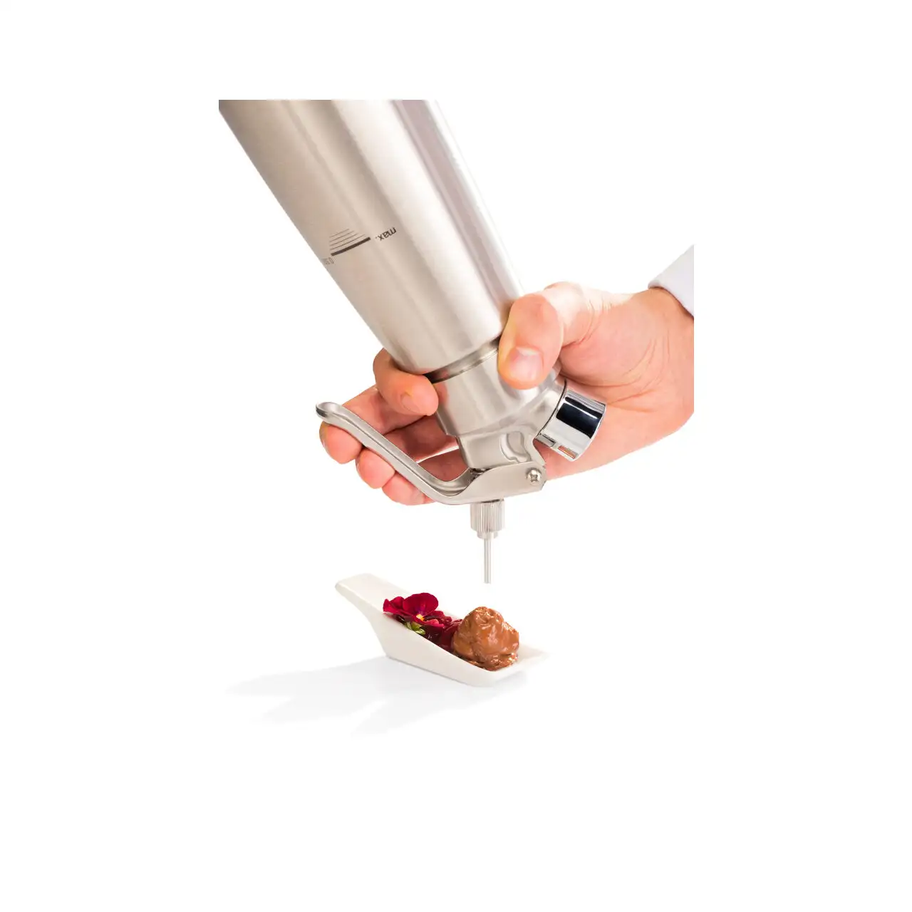 Aparat profesional pentru prepararea rapidă a frișcăi, cremelor, spumelor și deserturilor aerate. Modelul ProfiLine este realizat din aluminiu rezistent, conceput pentru utilizare intensivă în bucătării profesionale, cofetării și unități HoReCa. Corpul durabil asigură rezistență la presiune și performanță constantă în timp.