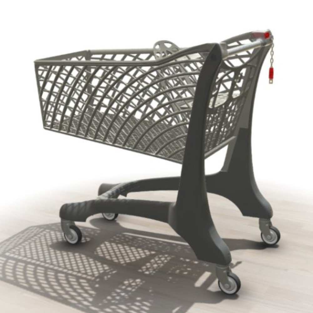 Cărucior din plastic TWIGA 150 L, disponibil în variantele gri închis cu perete-spate gri și gri cu corp verde, este proiectat pentru supermarketuri și magazine de dimensiuni medii.