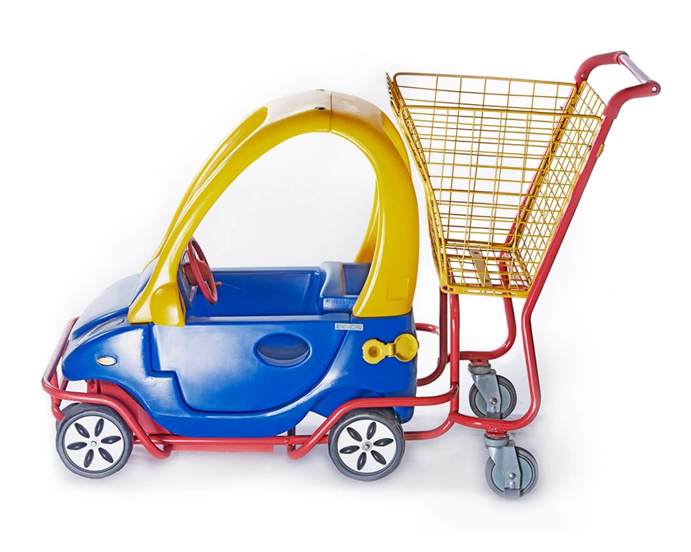 Cărucior pentru cumpărături cu mașinuță și coș (3 roți)