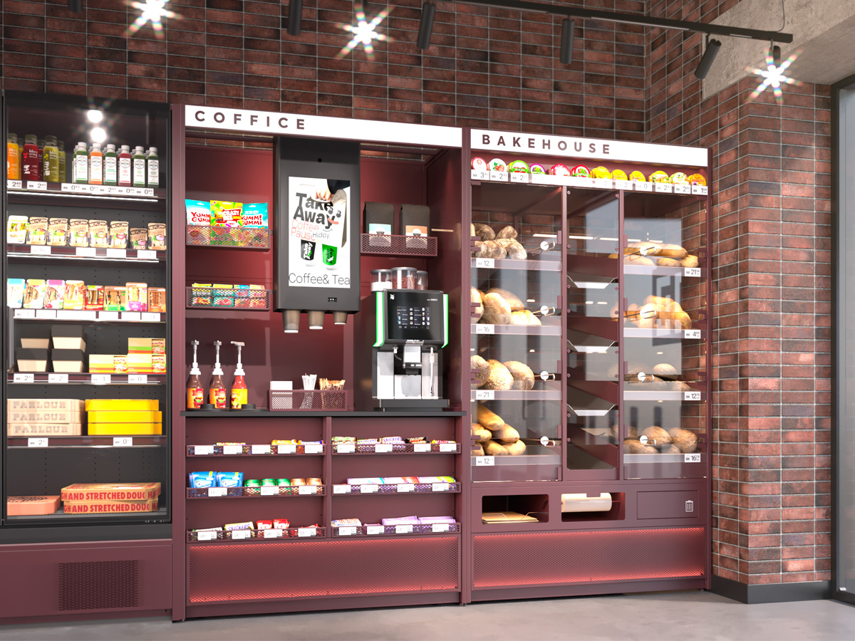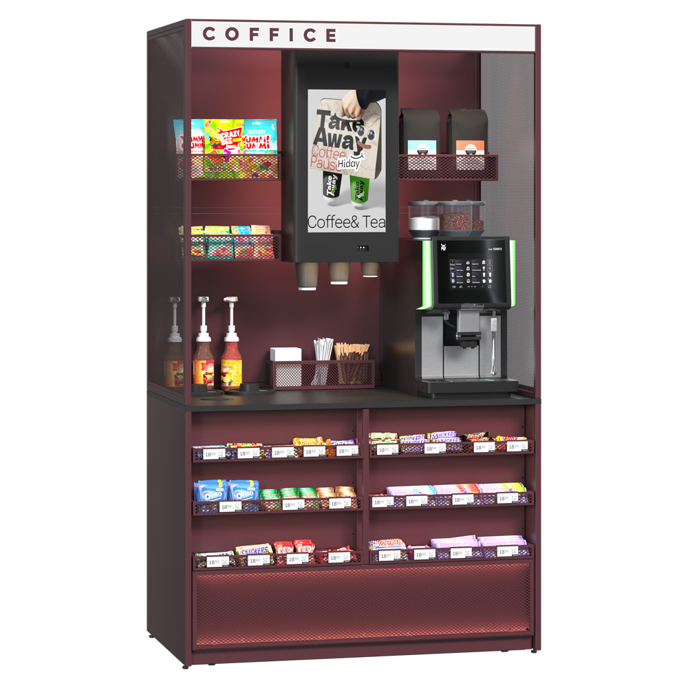 Stația automată de cafea self-service este soluția ideală pentru birouri, supermarketuri, benzinării, centre comerciale și HoReCa. Cu un design compact și modern, transformă orice spațiu într-un coffee corner funcțional și atractiv. Este dotată cu dozator automat pentru espresso, cappuccino, latte și alte băuturi calde, blat de lucru pentru accesorii, rafturi organizate pentru siropuri, pahare și gustări, precum și opțiunea de integrare a plăților contactless. Iluminarea și afișajul digital sporesc vizibilitatea și impactul vizual. Această stație crește vânzările, reduce costurile cu personalul și oferă clienților o experiență rapidă și modernă, reprezentând o investiție practică și eficientă în retail și spații corporate.