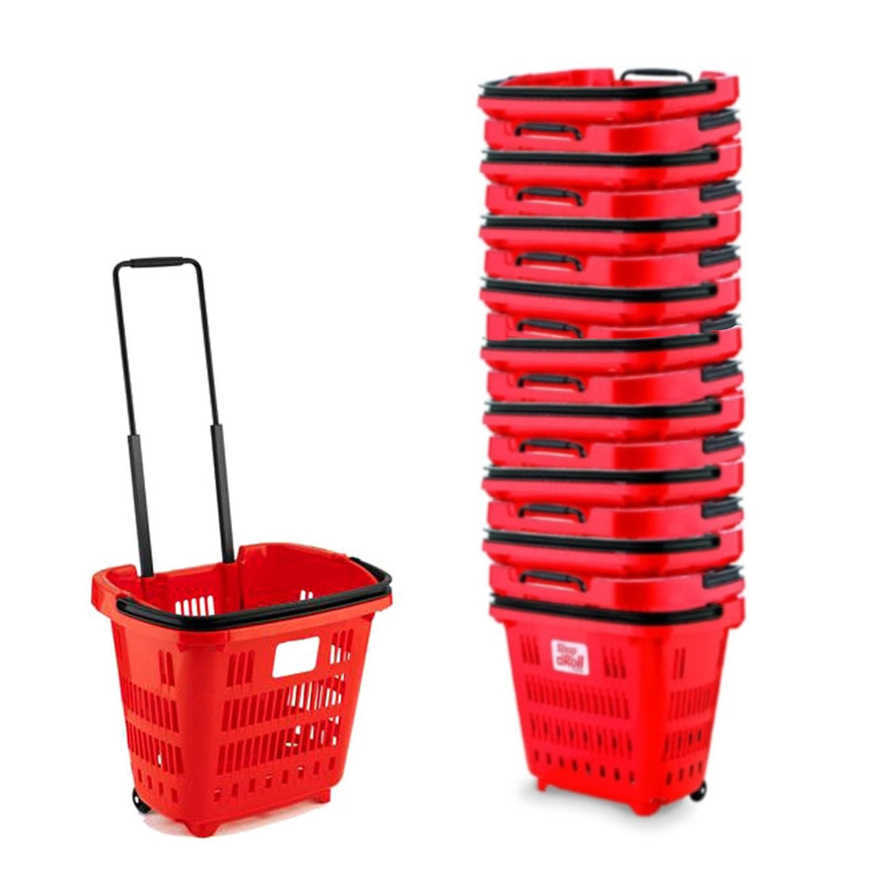 Coș de cumpărături cu mâner telescopic și roți, 34 L, roșu