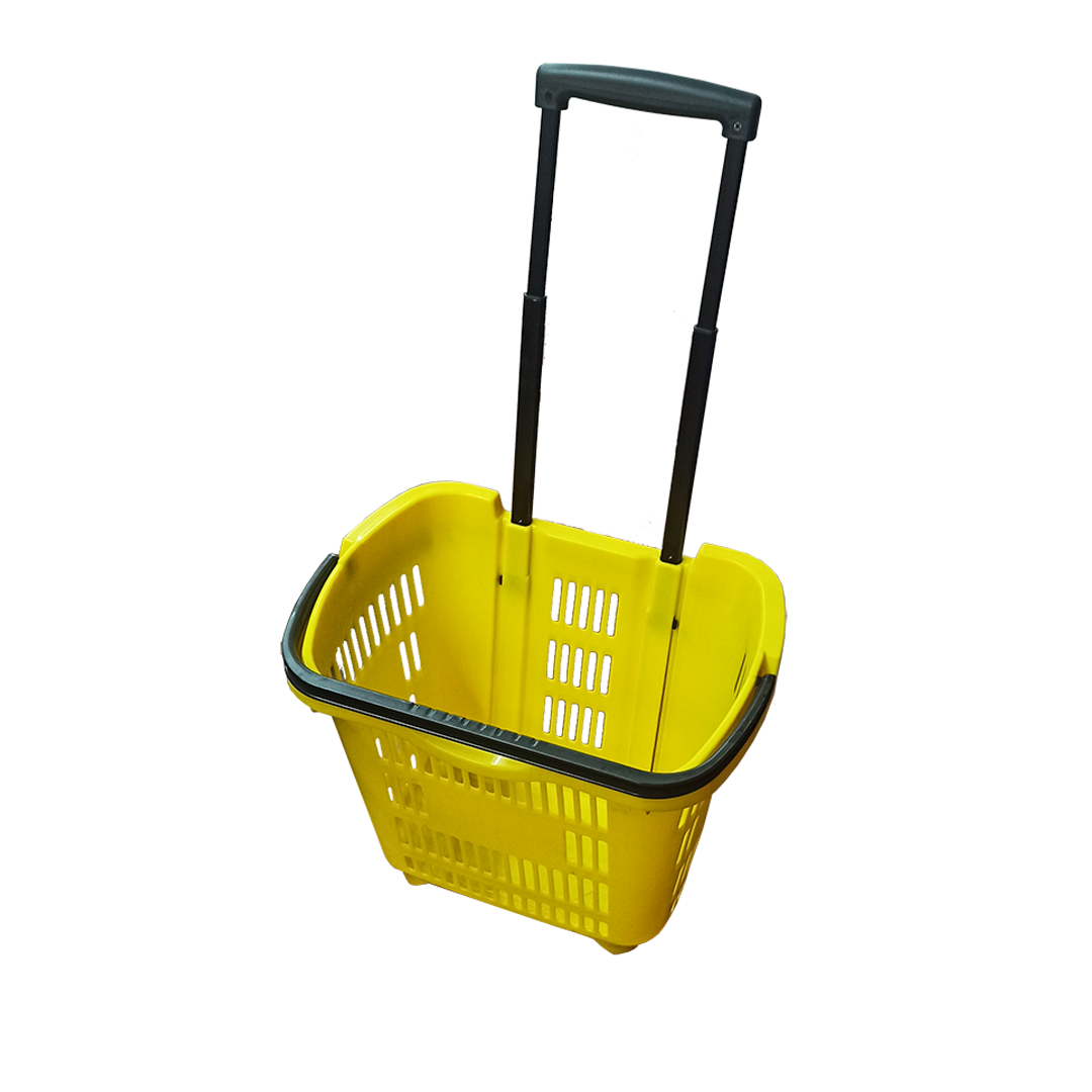 Coș de cumpărături din plastic durabil și ușor, potrivit pentru supermarket, minimarket sau magazine de nișă. Carcasa aerisită oferă vizibilitate bună a produselor și se spală rapid.