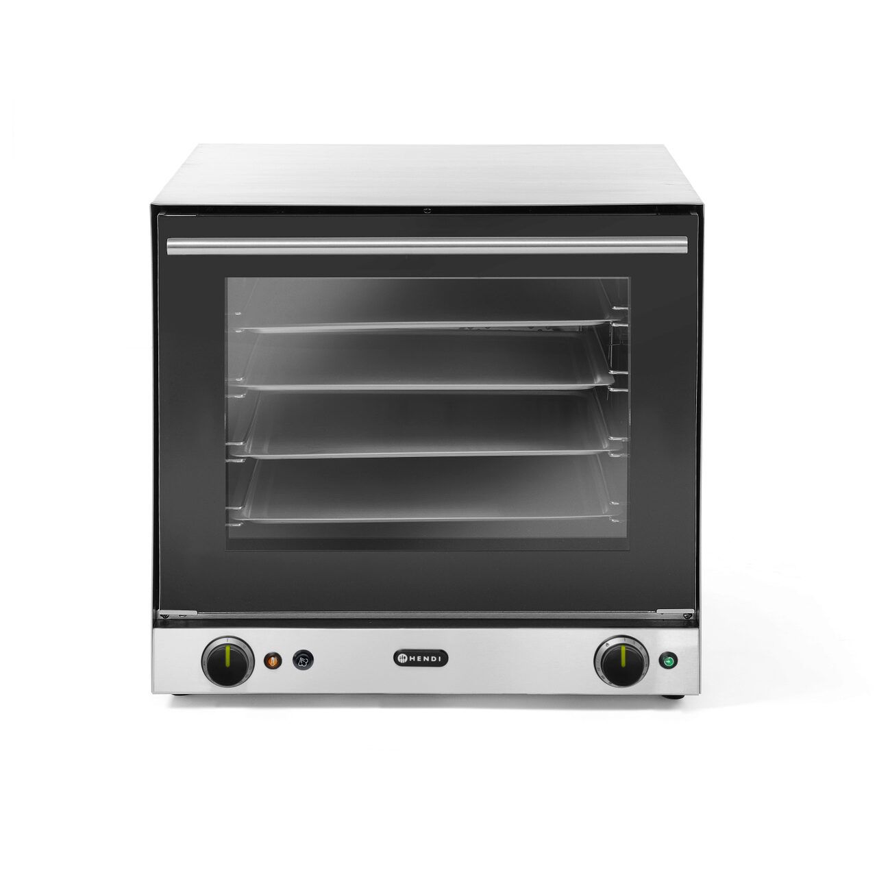 Cuptor convectie cu umidificare Hendi H90S, 4 tavi 438x315 mm incluse, 2 elemente incalzire, 2 ventilatoare, termostat reglabil 50-300 gr C, timer 0-120 min, 2670W, 595x595x(H)570 mm