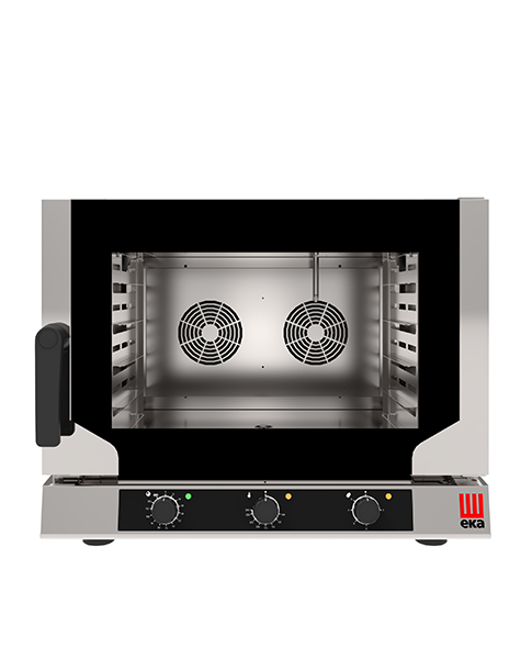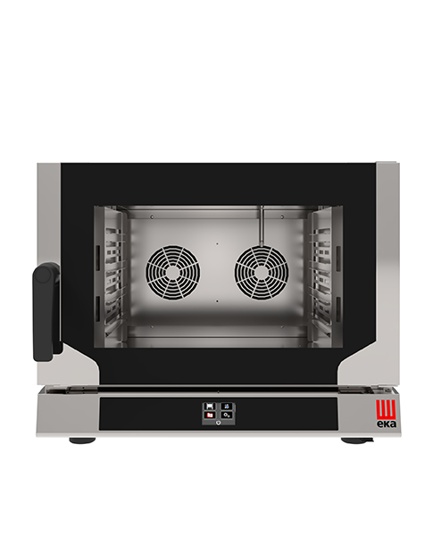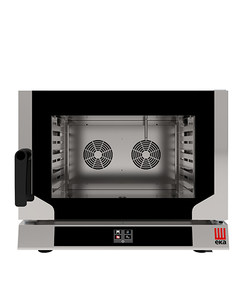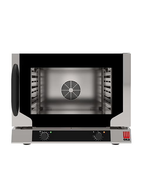 Cuptor electric cu convecție cu sistem de abur indirect pentru coacerea profesională. Cuptor cu convecție compact, ideal pentru baruri, brutării, catering și bucătării mici.
