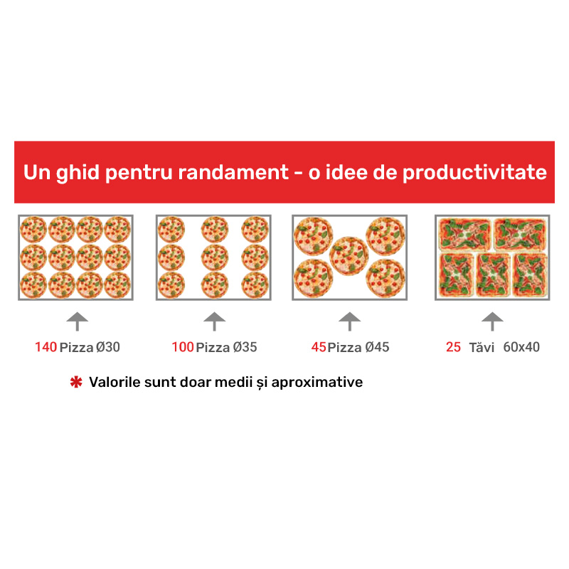 100 pizza Ø30 cm/h, 100 pizza Ø35 cm/h, 45 pizza Ø45 cm/h