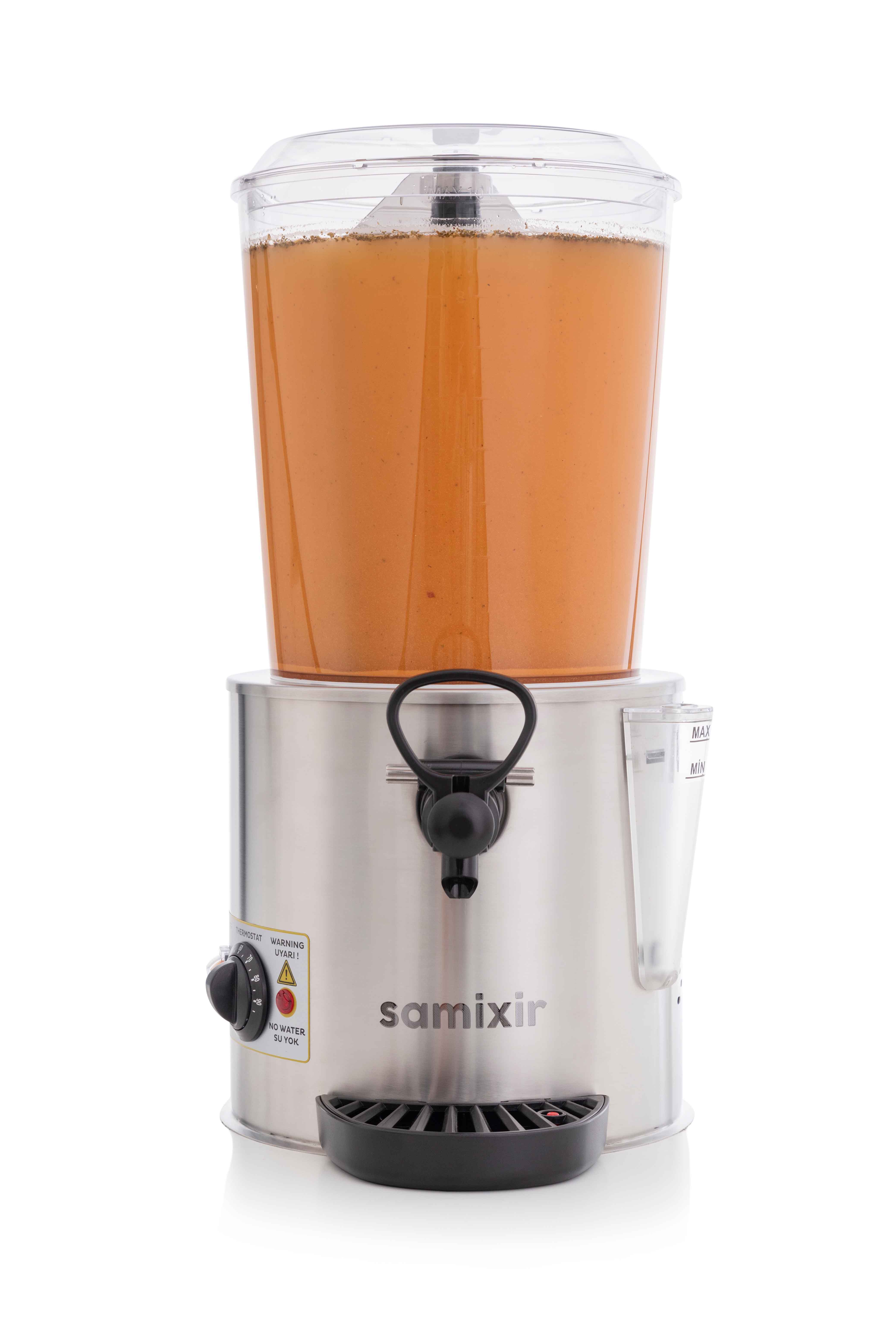 Dispenser pentru băuturi calde de 10 litri, conceput pentru încălzirea, amestecarea și servirea salep, ciocolată caldă, cafea, lapte cald, ceai, ceaiuri din plante, vin cald, folosind sistemul special „BAIN-MARIE” pentru consistență netedă și densitate optimă.