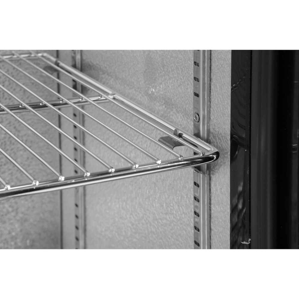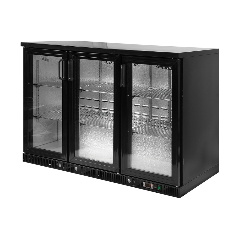 Dulap frigorific/vitrină pentru sticle YATO, cu 2 uși culisante din sticlă călită, capacitate 227 L, dimensiuni 920x515x905 mm și greutate 102 kg. Funcționează la 230 V / 200 W, cu interval de temperatură +2...+8 °C. Echipat cu 4 rafturi cromate (835x350 mm), iluminare LED 8 W și control electronic Dixell cu afișaj digital.