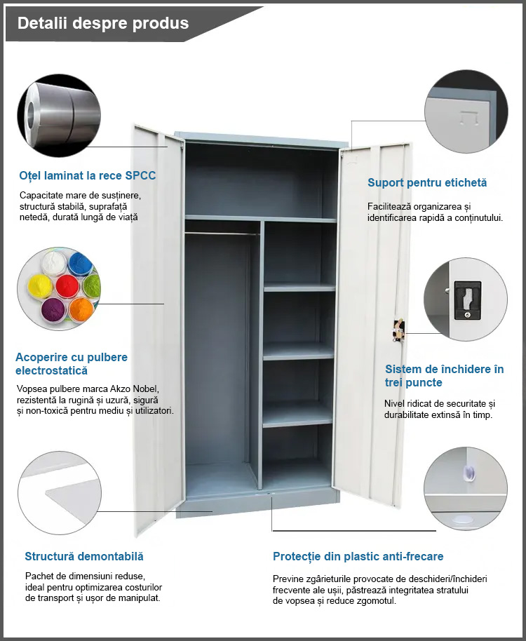 Dulapul metalic KEFEIYA cu 2 uși și compartimente pentru depozitare