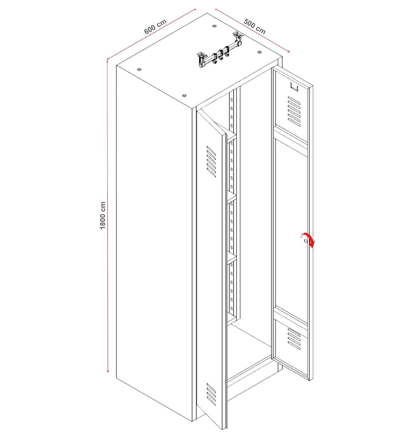 Dulapul metalic KEFEIYA cu o ușă și 5 compartimente, pentru depozitarea hainelor și echipamentelor profesionale, 500x500x2000 mm