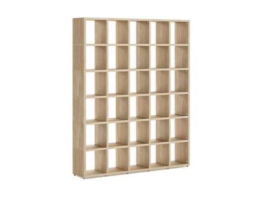Sistem de depozitare cu rafturi cubice BOON, DOLLE, cu dimensiunile 1810x330x2180 mm și finisaj în nuanță stejar, este o piesă de mobilier modulară și versatilă, ideală pentru depozitare și expunere.