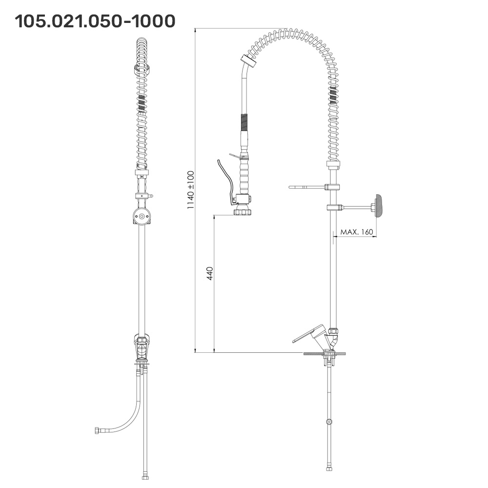 Furtun pentru spălare vase, cu fixare pe chiuvetă / perete, 1330 mm, Smart Line 90°