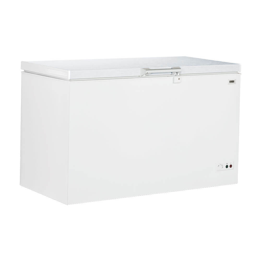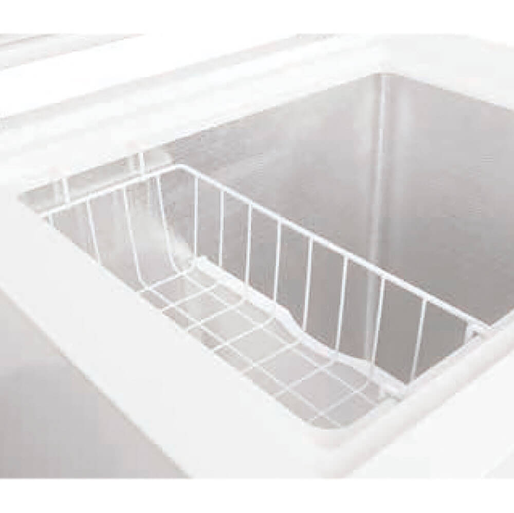 Carcasă vopsită cu pulbere, congelator ladă profesional, capac din oțel inoxidabil cu încuietoare cu cheie, depozitare sigură. Afișaj digital temperatură, control precis al temperaturii, iluminare LED interioară. Congelator ladă cu coș inclus, compartiment pentru organizare, racletă. Sistem de refrigerare +4°C / +6°C, mod de dezghețare -1°C / +1°C. Congelator cu autonomie ridicată, menținere temperatură -19°C până la -9°C fără alimentare electrică până la 39 ore. Sistem de evacuare a apei, congelator profesional pentru depozitare controlată.