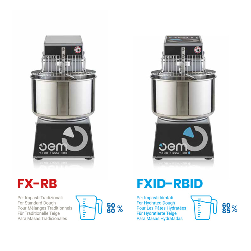 OEM FX-RB este gama de malaxoare spiralate destinată adevăraților profesioniști din panificație și patiserie, unde fiecare detaliu contează. Creat pentru a răspunde celor mai exigente cerințe de performanță și durabilitate, acest echipament premium îmbină tehnologia avansată cu un design robust și elegant.