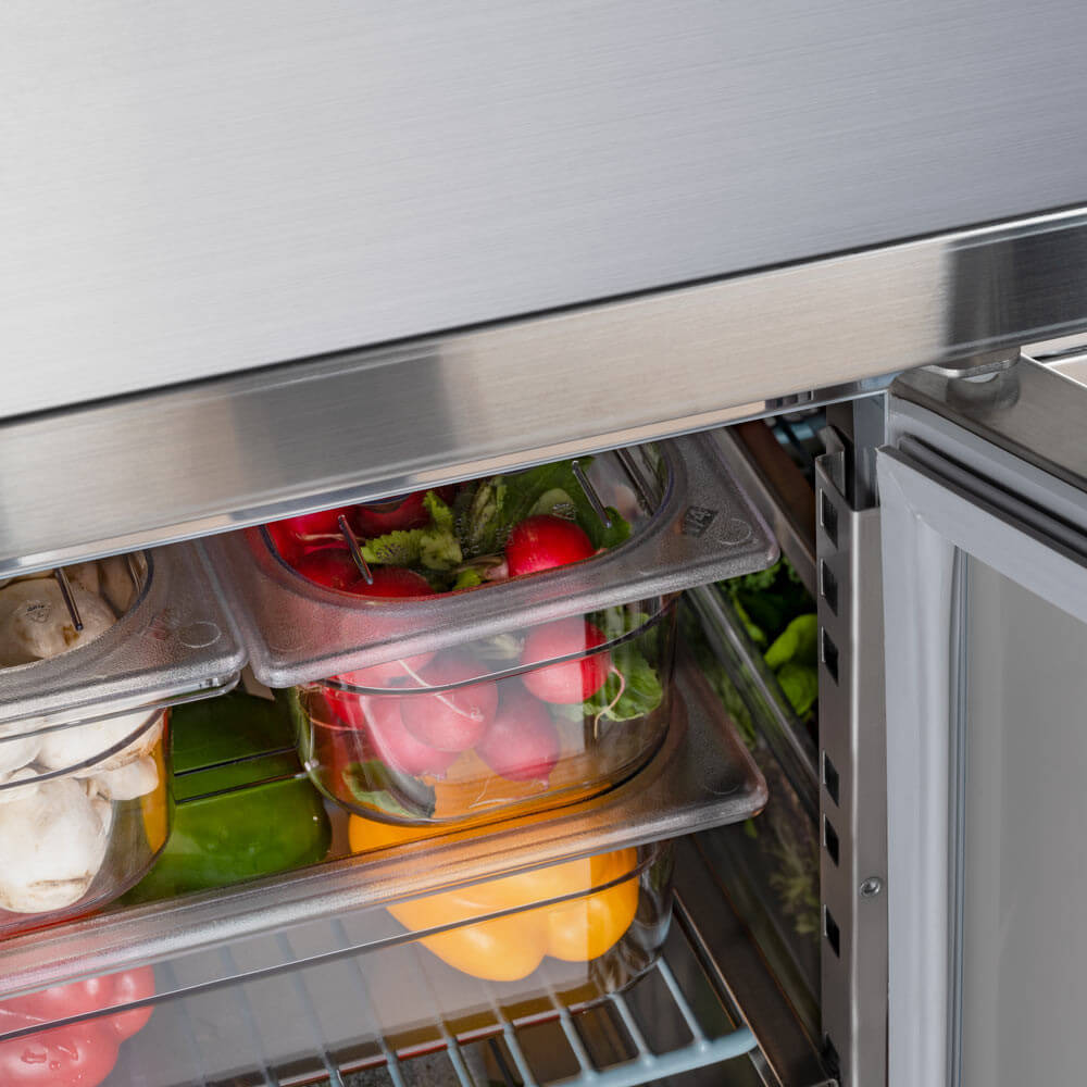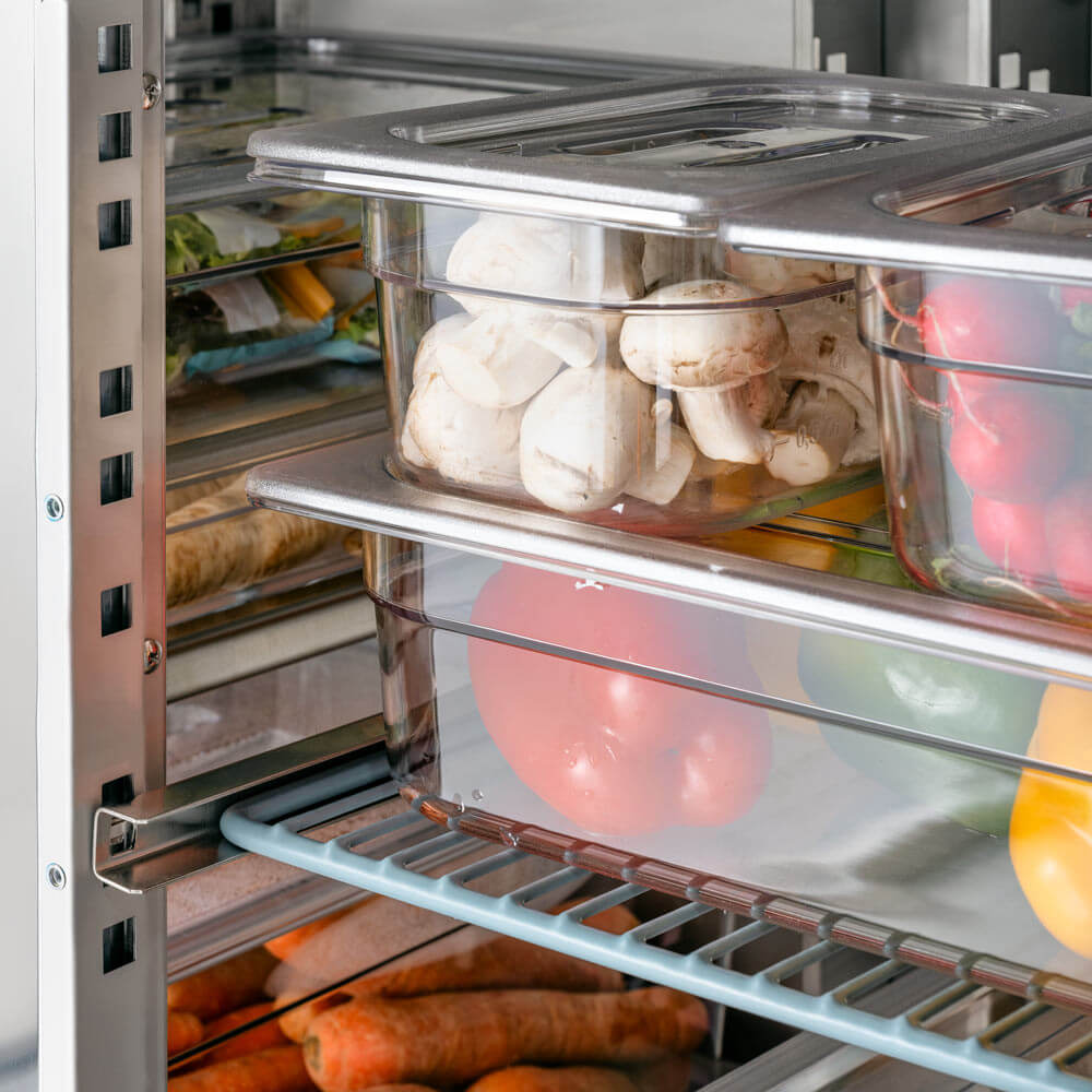 Masă frigorifică cu bordură, 3 uși, V 417 l Stalgast