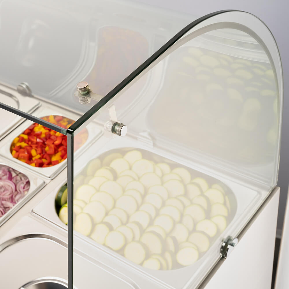 Masă frigorifică pentru salate cu 2 uși cu extensie din sticlă, V 240 l Salgast