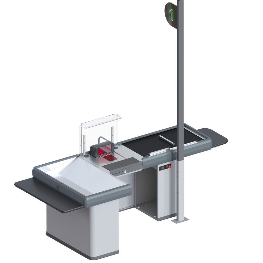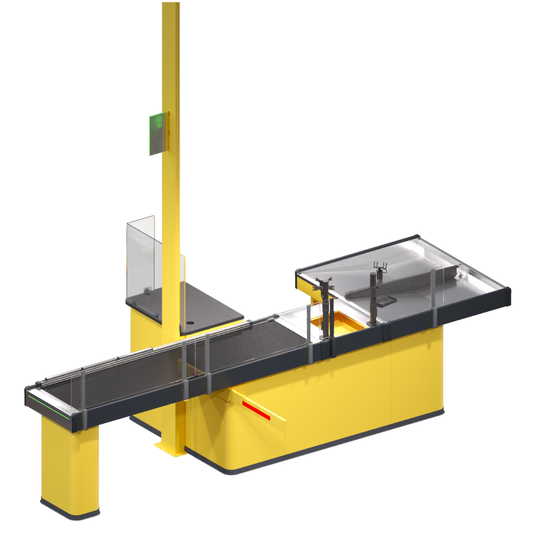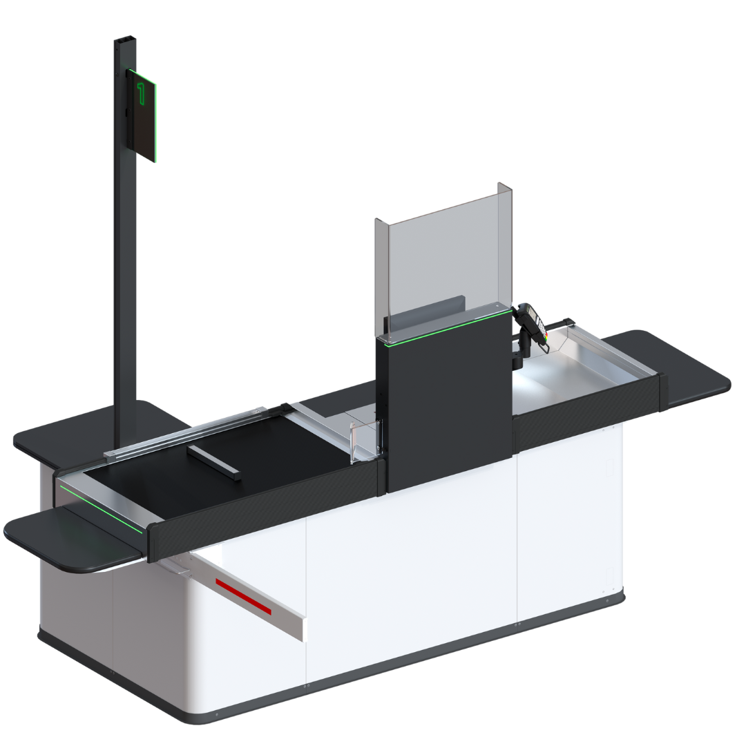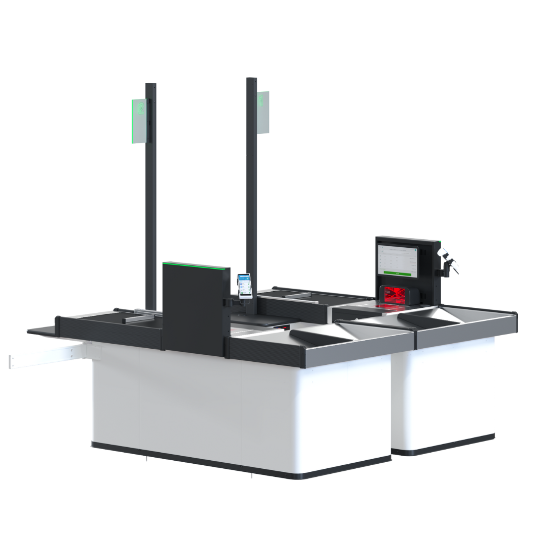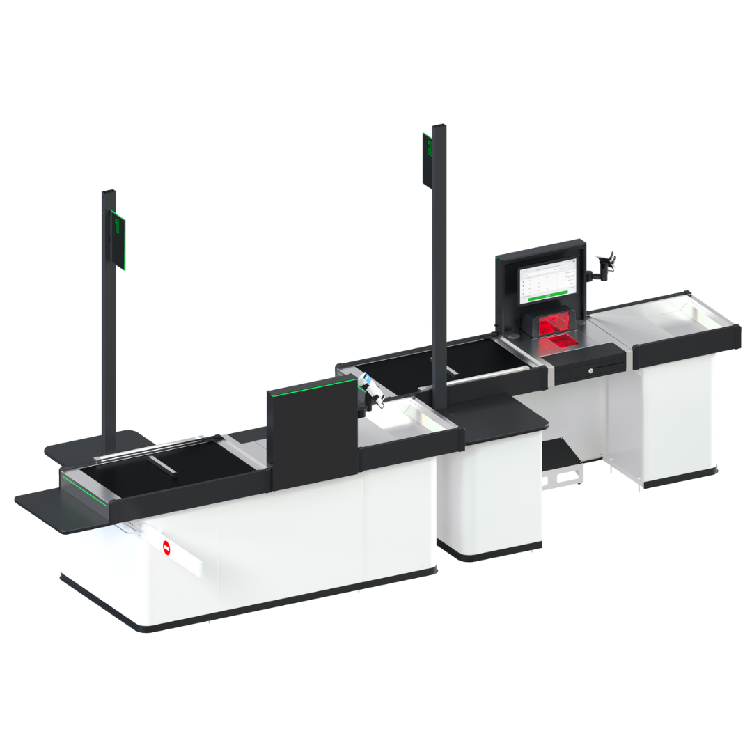 Soluție avansată pentru hipermarketuri și supermarketuri, cu design compact în tandem insular, ce optimizează spațiul în zona de casă. Performanță înaltă pentru gestionarea fluxurilor mari de clienți, asigurând viteze rapide de procesare.