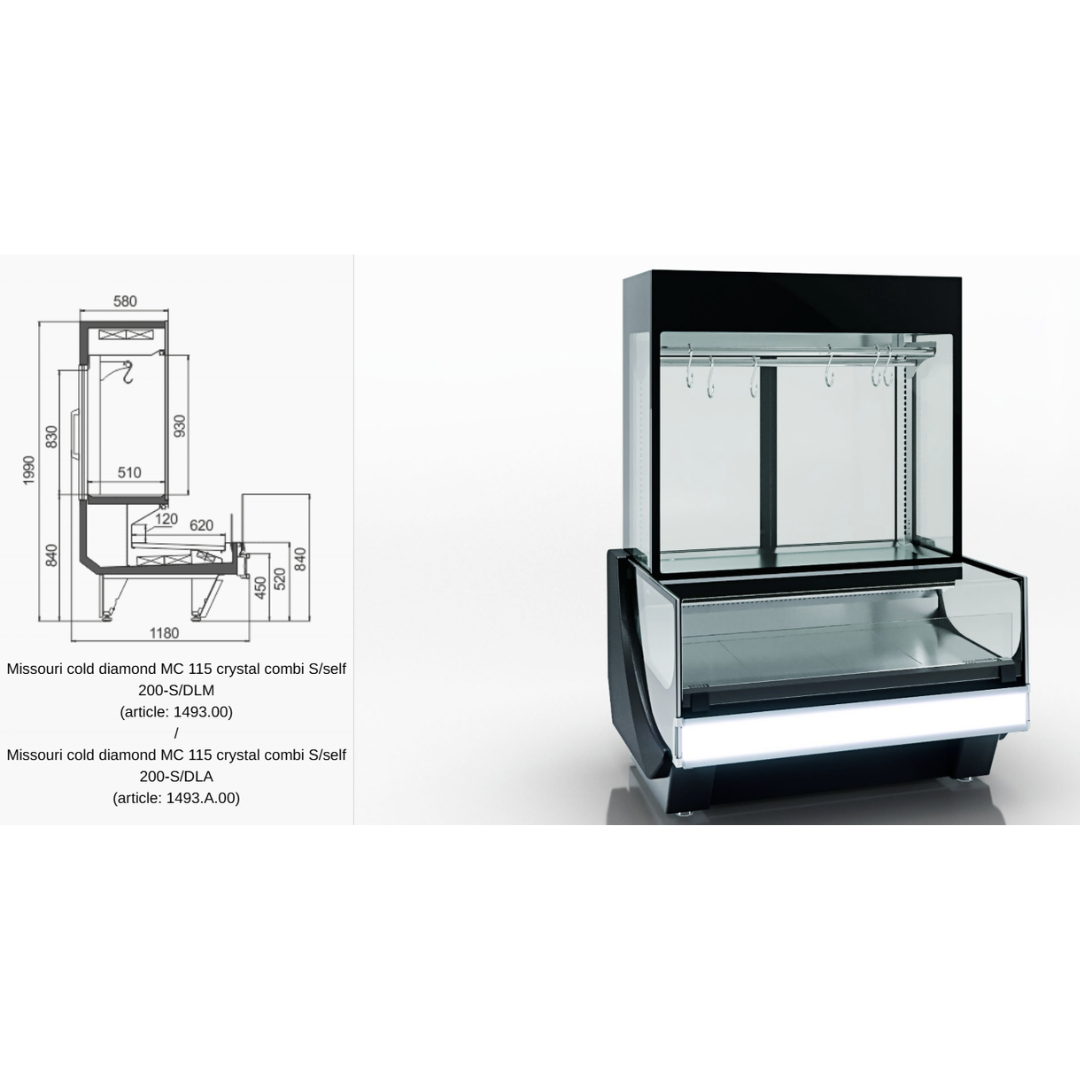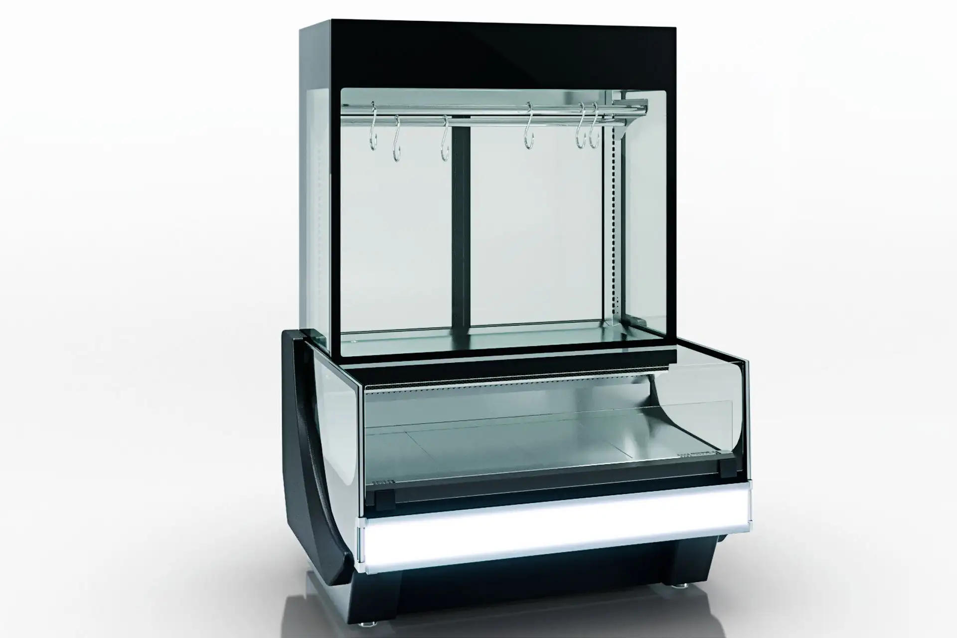 - permite expunerea cărnii atât pe cârlige, cât și pe suprafața de prezentare