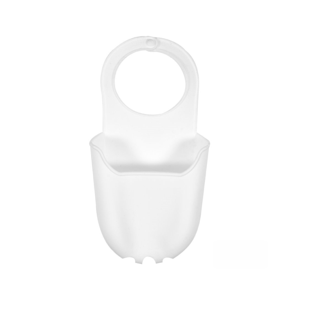 Organizator din silicon pentru baie alb, organizator flexibil pentru chiuvetă și robinet, suport din silicon pentru burete și accesorii, material rezistent la umezeală și variații de temperatură.