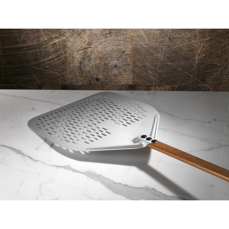 Paletă perforată dreptunghiulară pentru pizza, din aluminiu anodizat, WoodTech