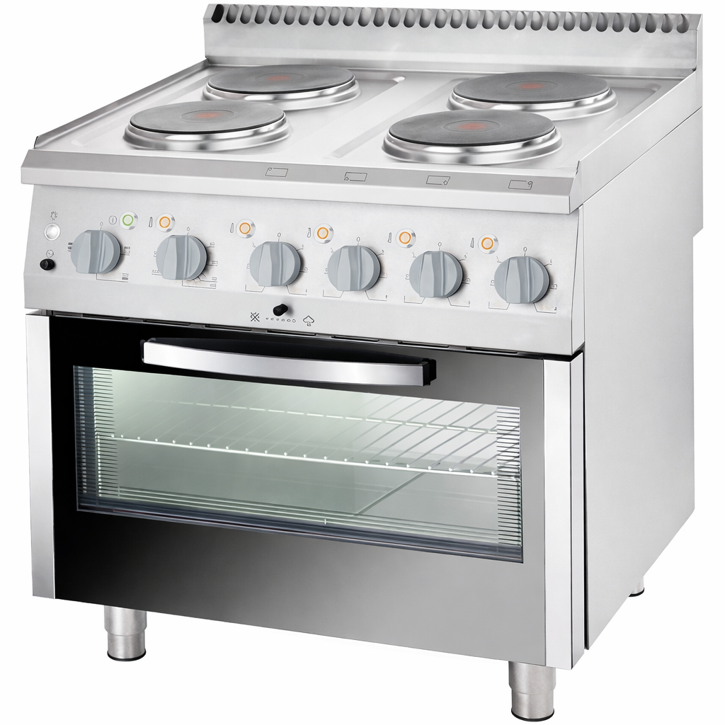 Plitele electrice profesionale cu 4 arzătoare sunt concepute pentru utilizare intensivă în bucătării HoReCa, restaurante și unități de catering. Gama include modele cu cuptor electric cu convecție, cuptor electric static, precum și variante fără cuptor, oferind flexibilitate în funcție de necesitățile de gătire și spațiul disponibil.