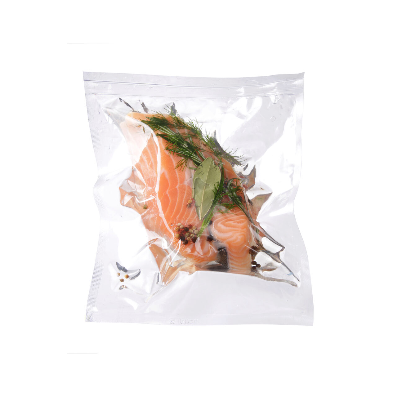 2 straturi Stratul interior este fabricat din polietilenă de grad alimentar. Strat exterior din poliamidă (nailon) – crește rezistența și garantează etanșeitatea. Grosimea totală: 65 μm.