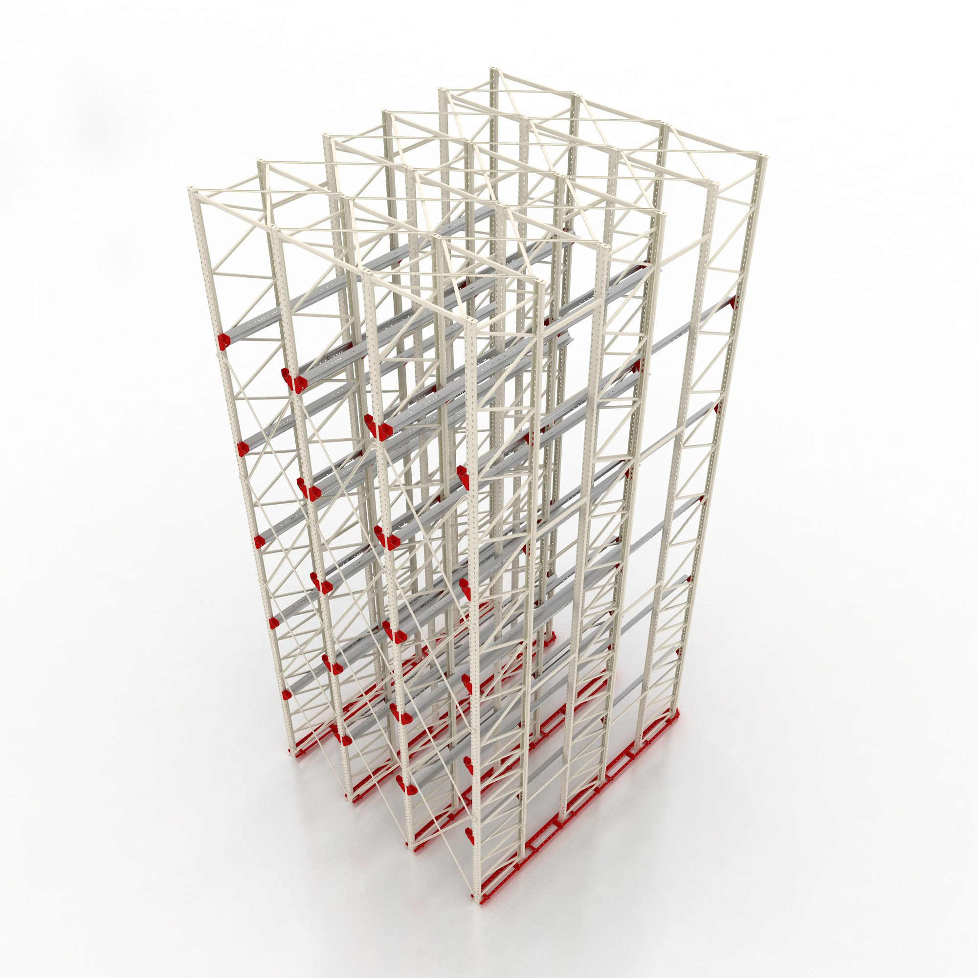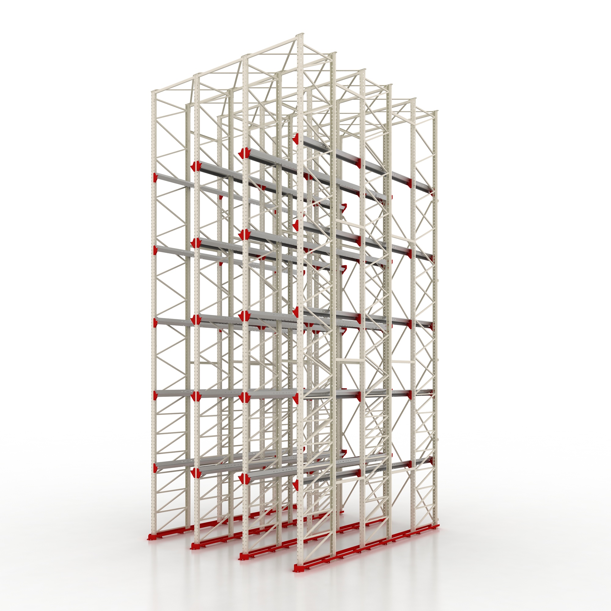 Rafturile Drive-in sunt concepute pentru depozitarea mărfurilor pe paleți compacți cu același tip de produse, cu un raport de rotație scăzut și o durată lungă de păstrare.