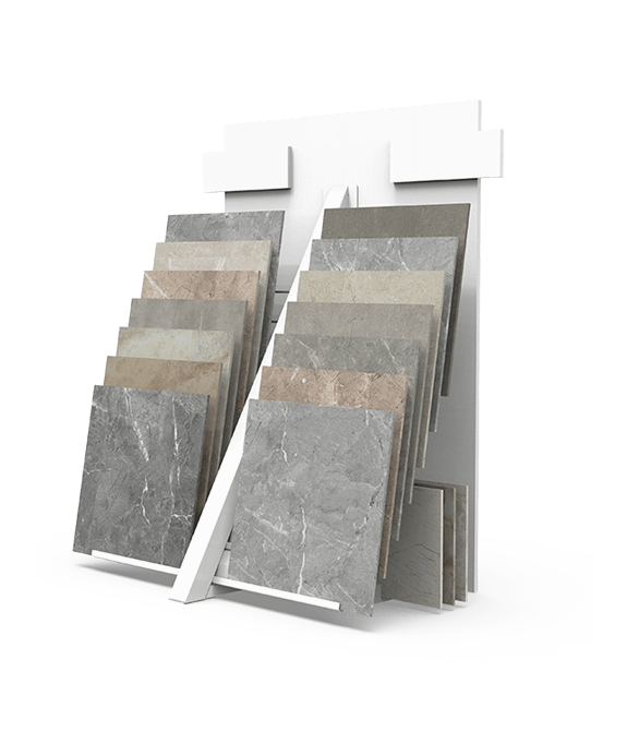 Stand vertical pentru teracotă, o soluție inovativă și eficientă pentru expunerea plăcilor de teracotă de 600x600mm, amplasate vertical. Conceput pentru a maximiza utilizarea spațiului, acest stand poate găzdui până la 12 plăci, oferind o prezentare clară și atractivă a fiecărui model. Structura sa solidă asigură o stabilitate excelentă, în timp ce designul său inteligent permite o vizualizare ușoară și o selecție rapidă a produselor. Ideal pentru showroom-uri, magazine de specialitate și expoziții, standul subliniază în mod elegant textura și culorile plăcilor de teracotă, creând o experiență organizată și profesionistă pentru clienți.