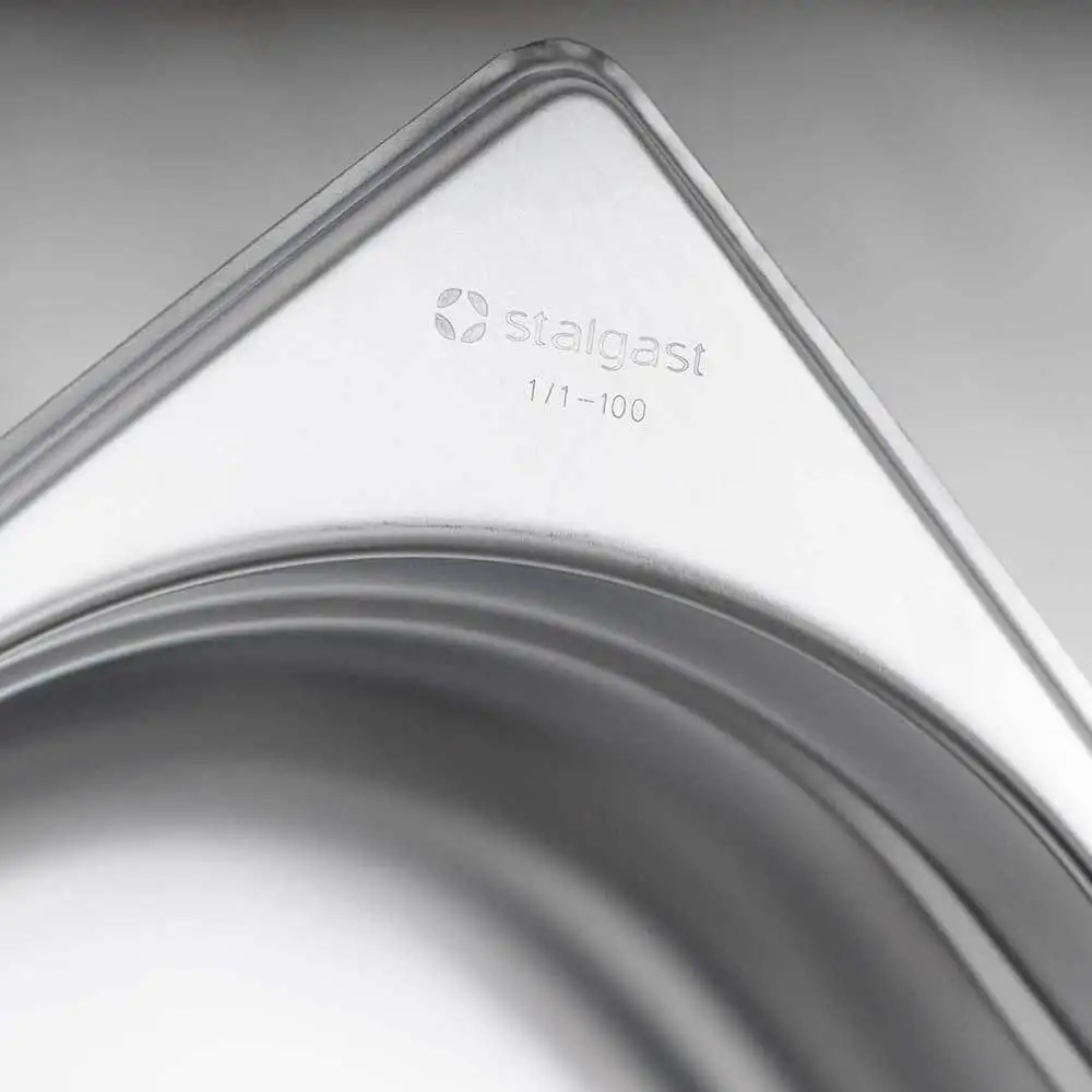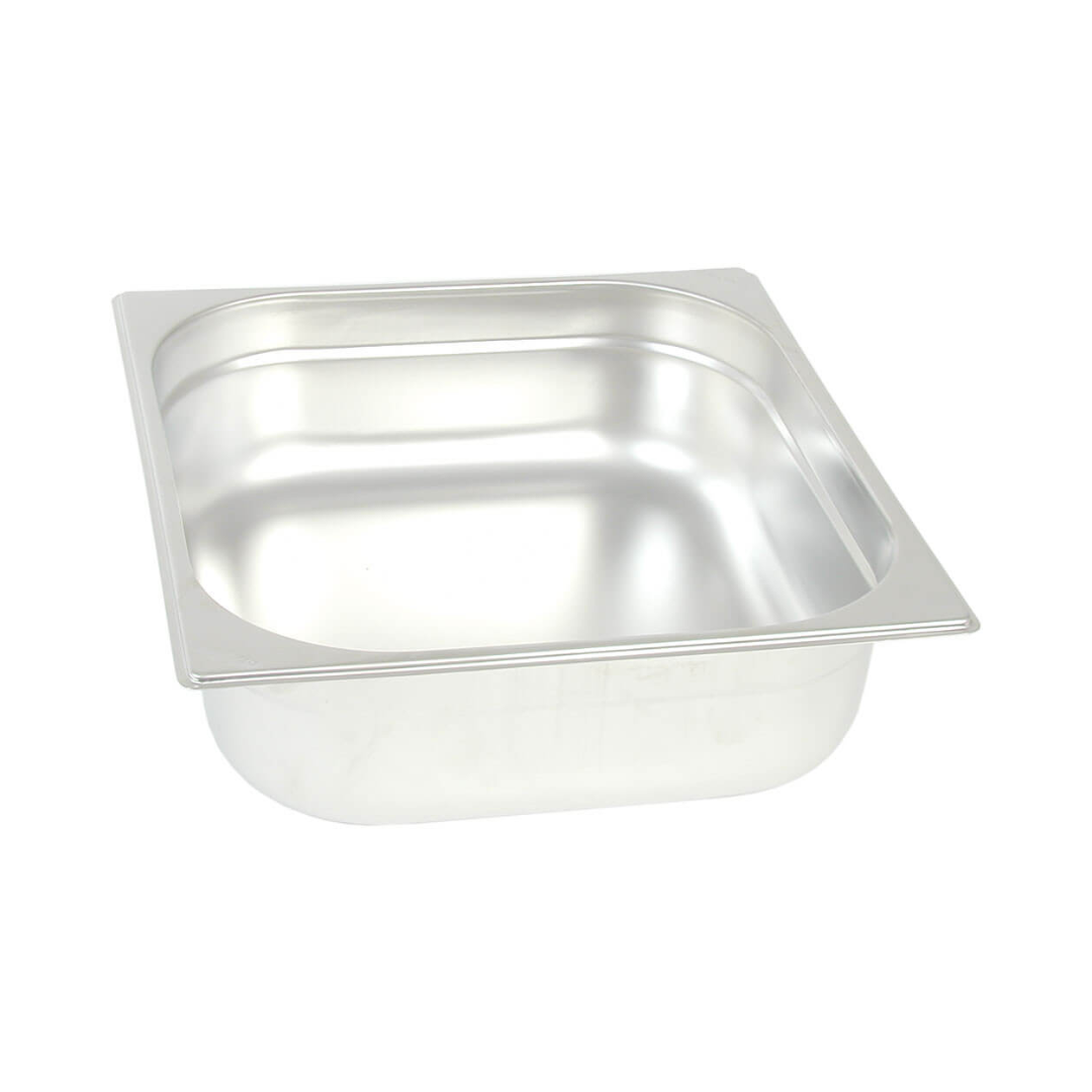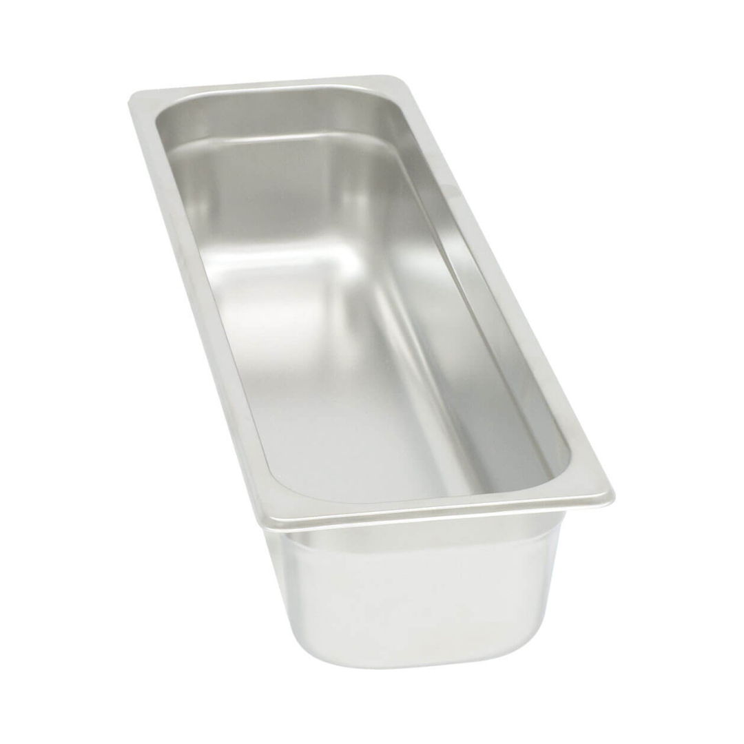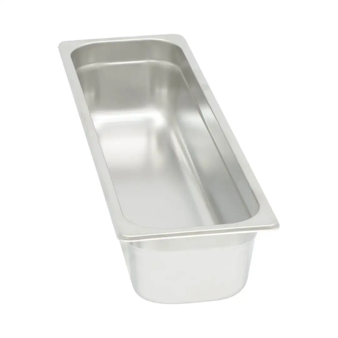 Recipient din oțel inoxidabil GN, recipient gastronorm profesional, recipient metalic alimentar pentru bucătărie profesională, realizat din inox durabil, cu suprafață netedă, rezistență ridicată la coroziune și temperaturi înalte.