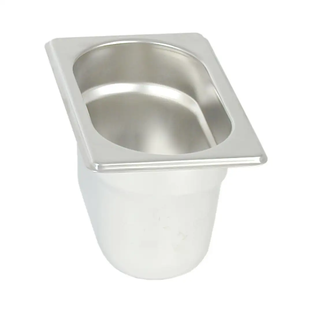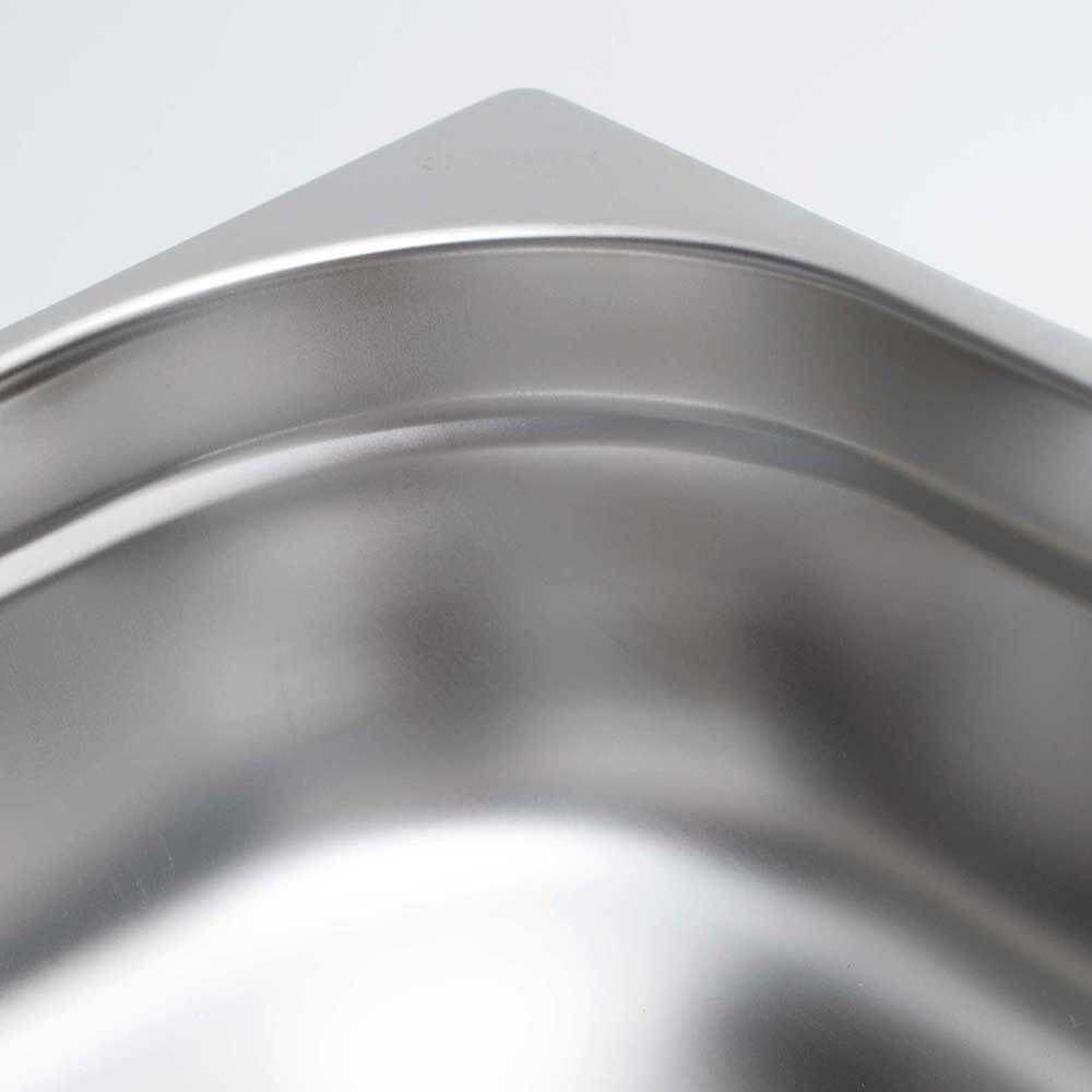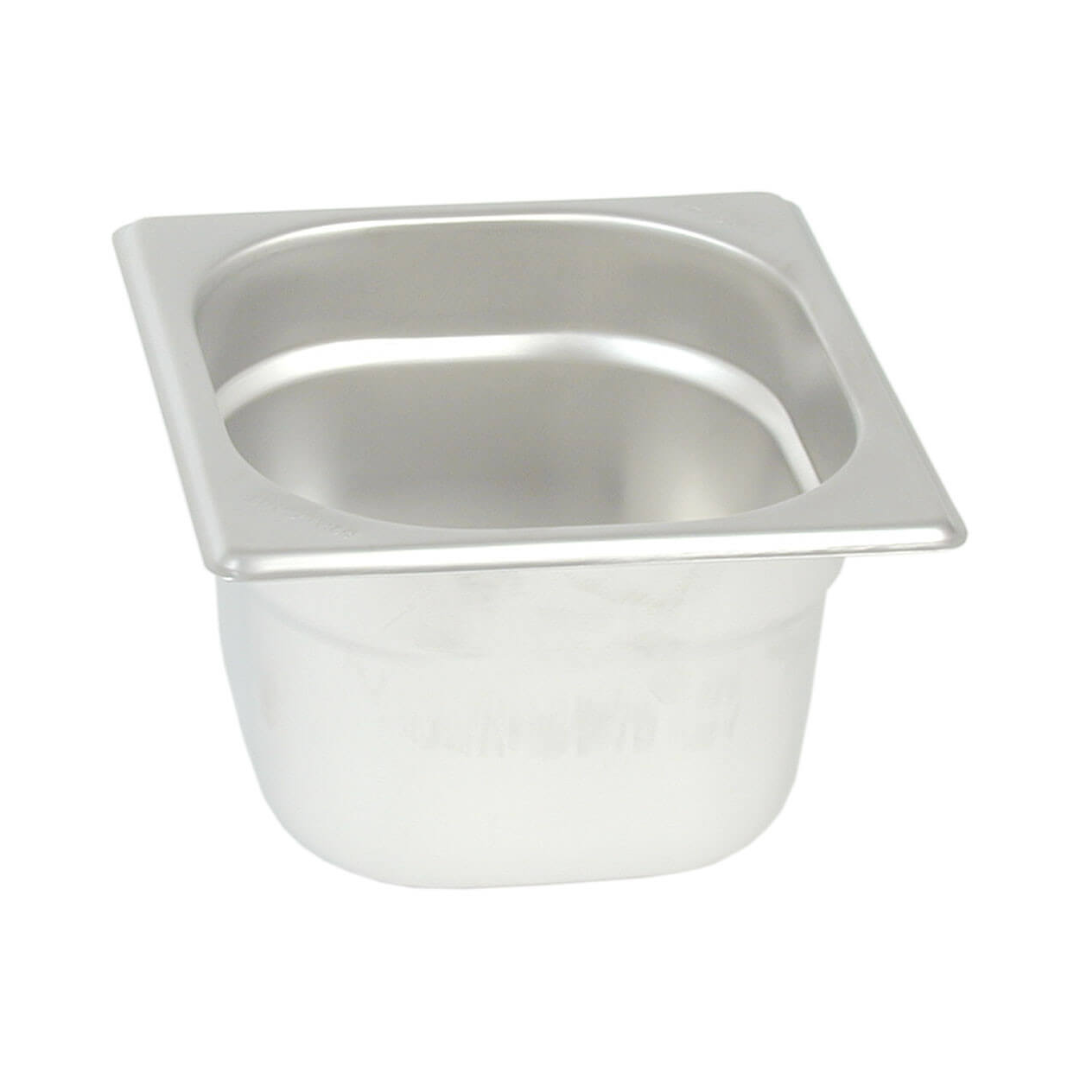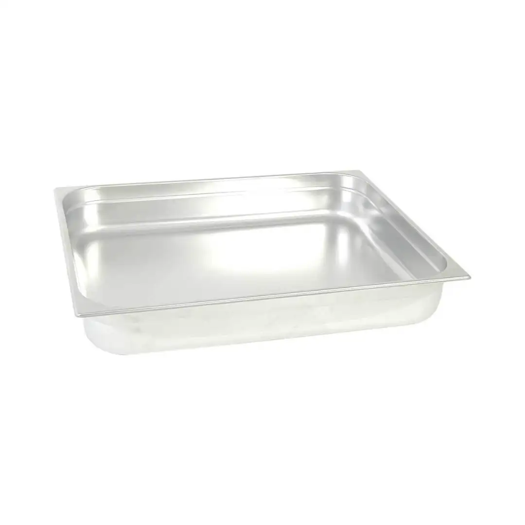 Recipient din oțel inoxidabil GN, recipient gastronorm profesional, recipient metalic alimentar pentru bucătărie profesională, realizat din inox durabil, cu suprafață netedă, rezistență ridicată la coroziune și temperaturi înalte.
