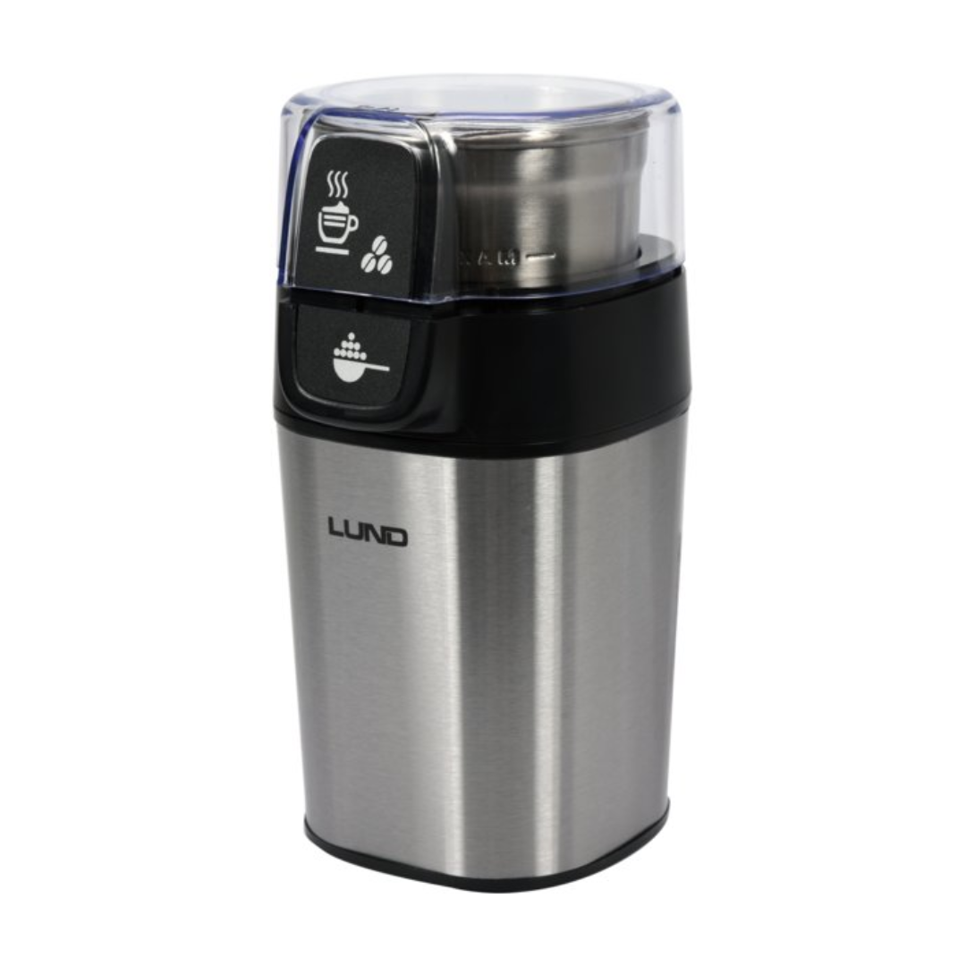 Râșnițele de cafea Lund cu puteri între 150W și 200W, inclusiv modelele 2-în-1, se remarcă prin construcția solidă din inox sau plastic rezistent, elemente din oțel inoxidabil și o capacitate optimă de 70 g.