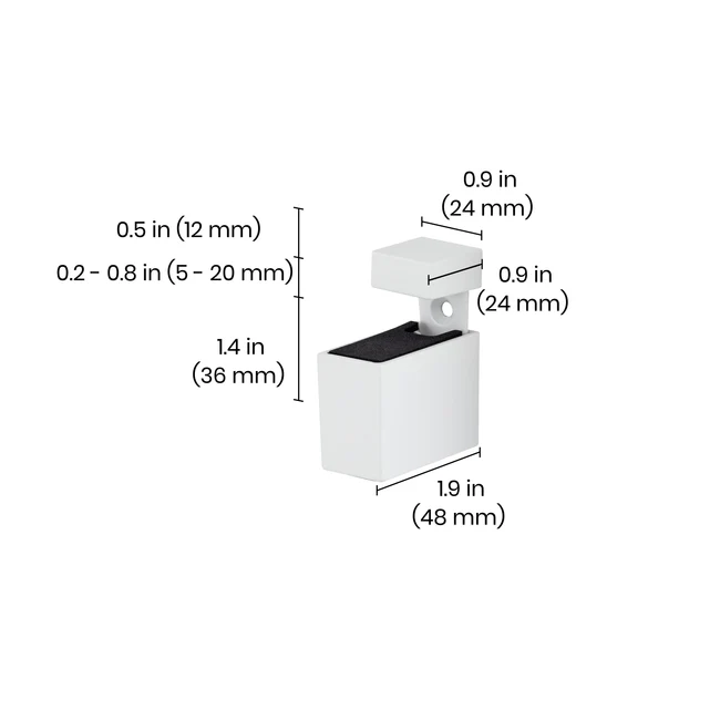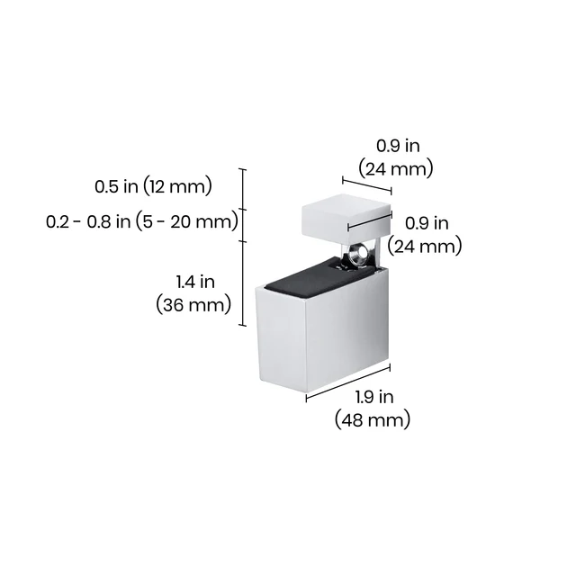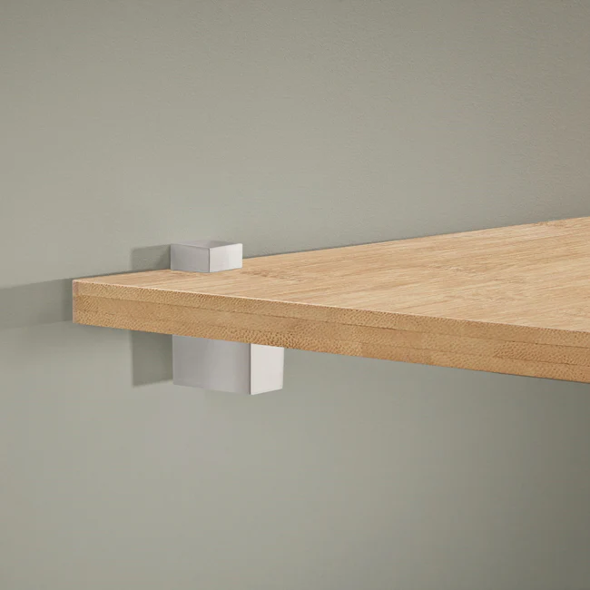 Setul de suporturi reglabile pentru rafturi, CUADRO Set 6–20 mm de la DOLLE este un sistem de prindere elegant și funcțional, ideal pentru montarea sigură și precisă a rafturilor din sticlă, lemn sau MDF, cu grosimi cuprinse între 6 și 20 mm.