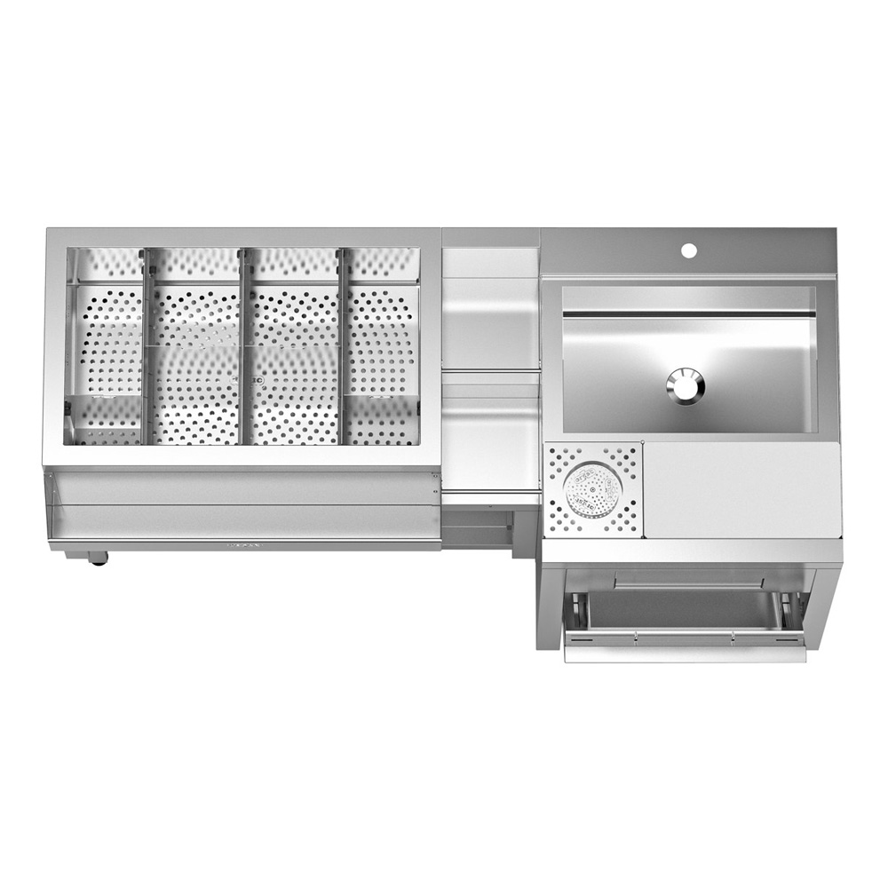 Stație barman din inox BS-1.6.3,cu chiuvetă GN 1/1 și suport dublu pentru pahare 1600x700x900mm