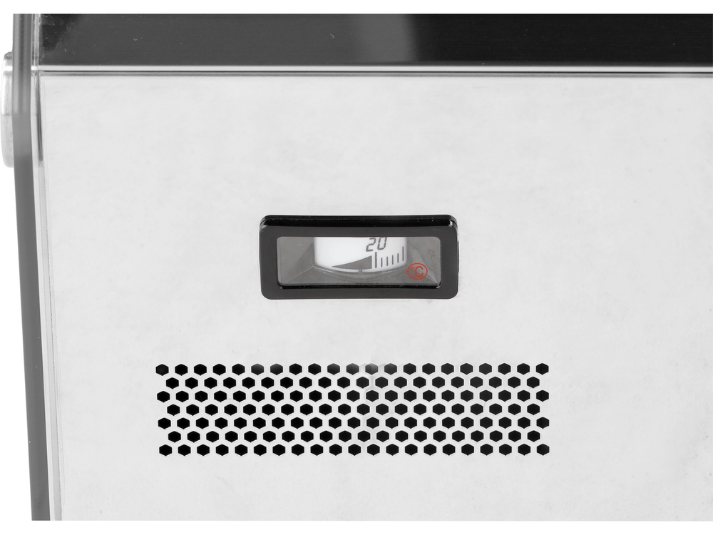 Vitrina termică de masă cu volum de 160 l este destinată menținerii preparatelor calde și expunerii acestora. Dispune de încălzire electrică și termostat reglabil, fiind potrivită pentru HoReCa.