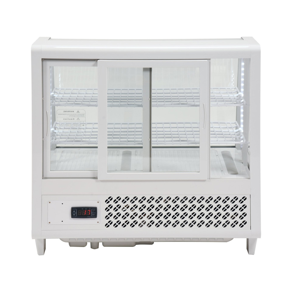 Vitrina frigorifică de 100 litri este ideală pentru expunerea băuturilor, deserturilor și produselor alimentare în cafenele, restaurante sau magazine. Realizată din oțel inoxidabil și dotată cu ușă culisantă din sticlă securizată, oferă iluminare LED, 2 rafturi reglabile, control electronic al temperaturii și funcție de dezghețare automată. Designul compact și elegant asigură vizibilitate maximă și funcționare silențioasă.