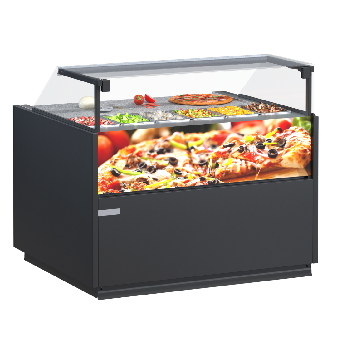Iluminarea LED superioară asigură vizibilitate clară a produselor expuse pe plăcile din oțel inoxidabil sau vopsite în pulbere, rezistente și ușor de întreținut. Unitatea de control intuitivă face manipularea simplă și eficientă, fiind soluția perfectă pentru spații comerciale dedicate pizza și alimentației.