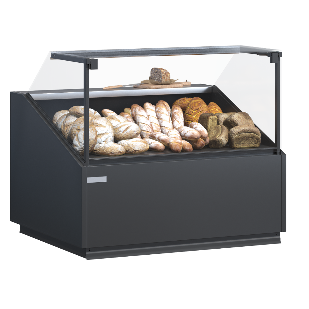 Panourile laterale și rafturile din sticlă asigură o vizibilitate clară, iar ușile glisante permit acces facil. Plăcile de afișare, realizate din oțel inoxidabil sau acoperite cu vopsea pulbere durabilă, conferă rezistență și design modern. Vitrină patiserie QuadroStream, echipament frigorific ideal pentru comercializarea confiturilor, prăjiturilor și produselor de patiserie.