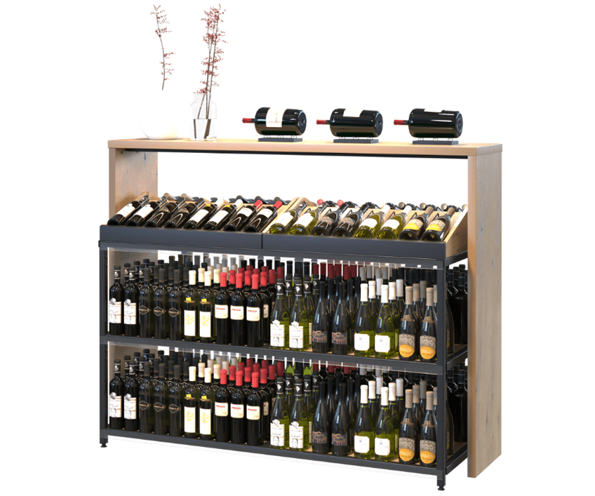 Realizate cu borduri decorative din lemn și finisaje variate, rafturile oferă un aspect sofisticat, integrându-se armonios în supermarketuri, hipermarketuri, vinoteci, restaurante, baruri, hoteluri sau chiar colecții private. Structura ergonomică le face comode pentru clienți, oferind acces rapid la produse și contribuind la o experiență de cumpărare plăcută.