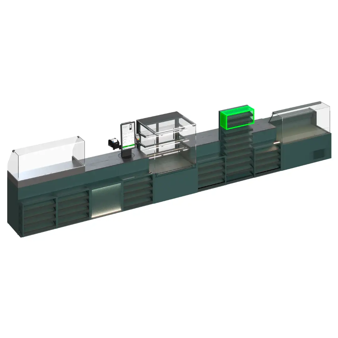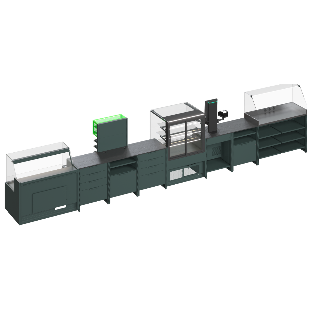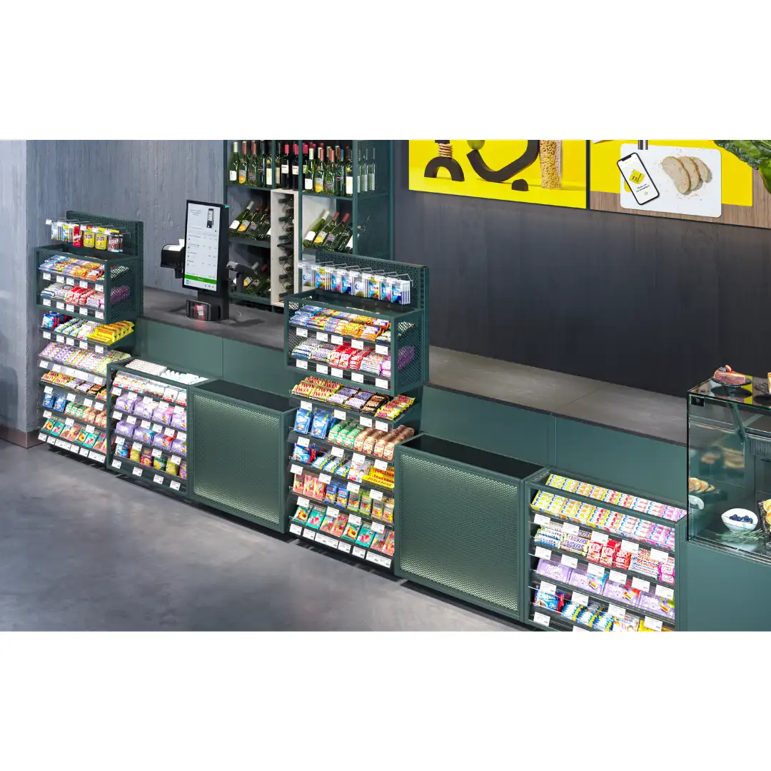 Fiecare element este orientat spre rezultate. Construcția modulară flexibilă se adaptează suprafeței și fluxului de clienți — de la magazine compacte până la proiecte de rețea. Casa rotativă funcționează în regim tradițional sau self-service, echilibrează fluxul de cumpărători și reduce timpul de așteptare în orele de vârf. Modulele integrate food-to-go stimulează vânzările impulsive și transformă zona de checkout într-o sursă suplimentară de profit.