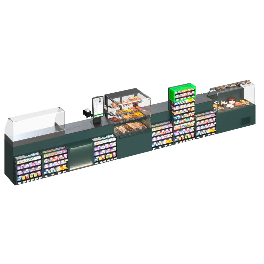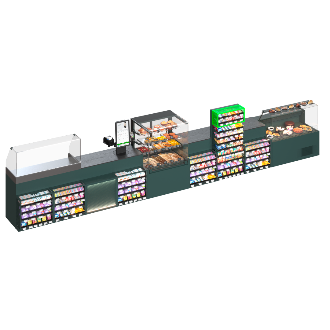 PULSAR nu este doar o linie de case, ci o arhitectură bine gândită a zonei moderne de checkout pentru magazine convenience, mini-marketuri și benzinării. Sistemul integrează module de casă, vitrine frigorifice QUADROS, stații HOT-DOG și casa rotativă ROTO într-o singură linie funcțională, concepută pentru utilizare intensivă zilnică.