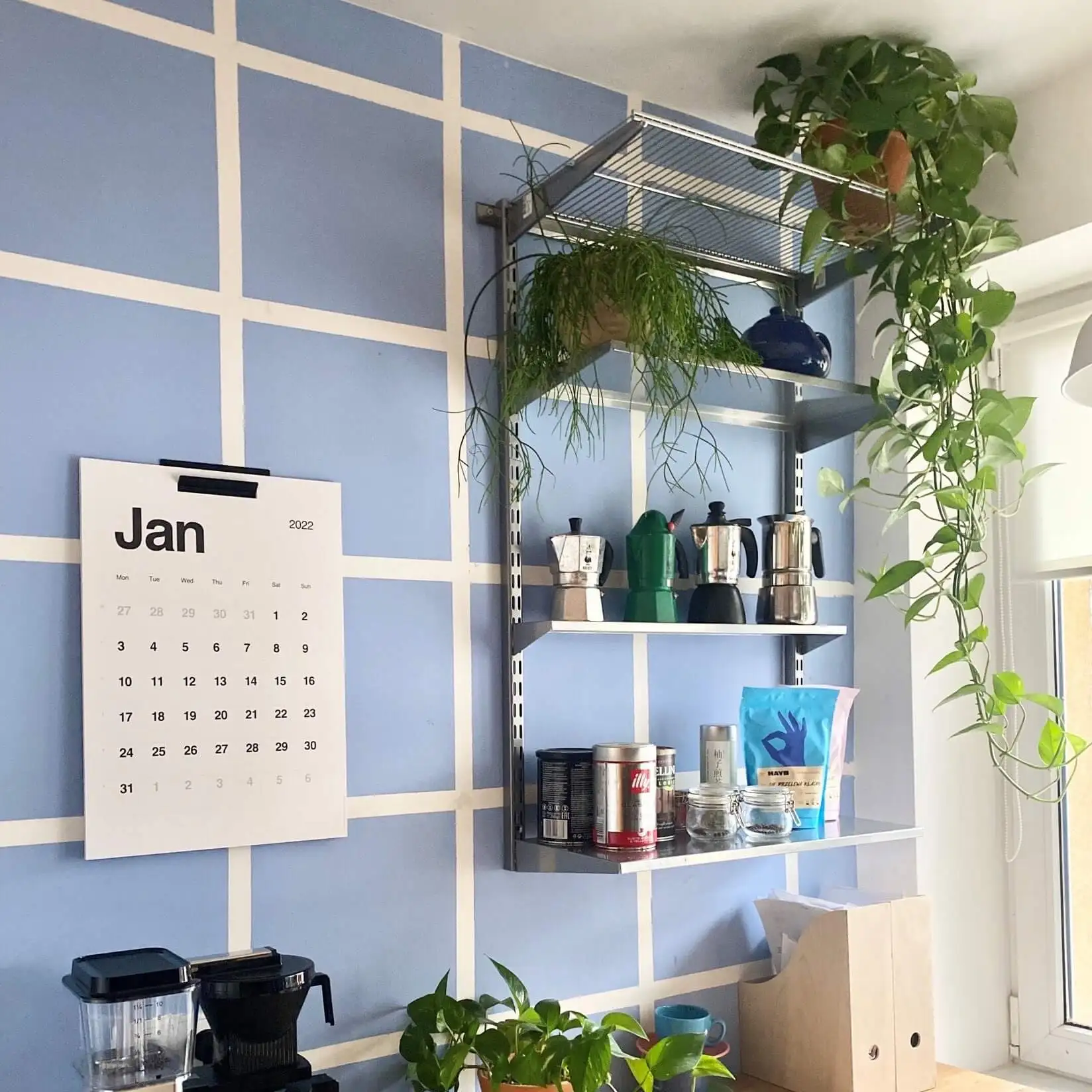 Soluție elegantă de organizare cu rafturi suspendate, perfecte pentru un colț practic și estetic, ideal pentru cănile preferate, aparate mici, borcane sau plante decorative. Rafturile metalice oferă stabilitate, vizibilitate și un plus de stil în orice bucătărie modernă.