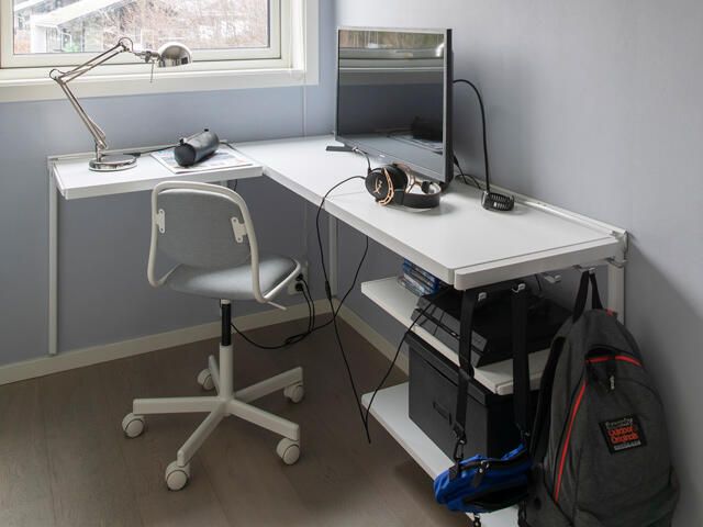 Soluția pentru organizarea locului de studiu și jocuri în camera pentru adolescenți include masă modulară cu blat adânc pentru monitor și laptop, rafturi reglabile pentru consolă, PC și periferice și panou lateral cu cârlige pentru ghiozdane și căști. Sistemul se montează pe perete și eliberează podeaua pentru libertate de mișcare, iar treptele de reglaj permit ajustarea pe înălțime pe măsură ce adolescentul crește. Polițele ventilate îmbunătățesc răcirea echipamentelor, iar traseele pentru cabluri reduc dezordinea. Materialele rezistente suportă uzura zilnică și se curăță ușor. Designul compact valorifică colțurile înguste și folosește lumina naturală.