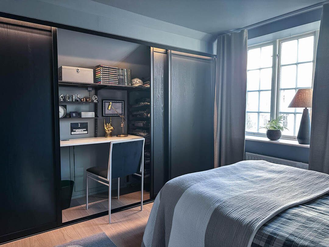 Soluția funcțională pentru camera adolescenților reprezintă integrarea perfectă a spațiului de lucru sau studiu și a spațiului pentru depozitarea hainelor și echipamentului sportv. Rafturile și sertarele modulare se instalează ușor și sunt ideale pentru organizarea și depozitarea hainelor în dulap, cărților, obiectelor personale și birotică. Masa de lucru încorporată în dulap, permite economisirea spațiului în cameră, oferă confort, iar camera rămâne mereu curată și aerisită.