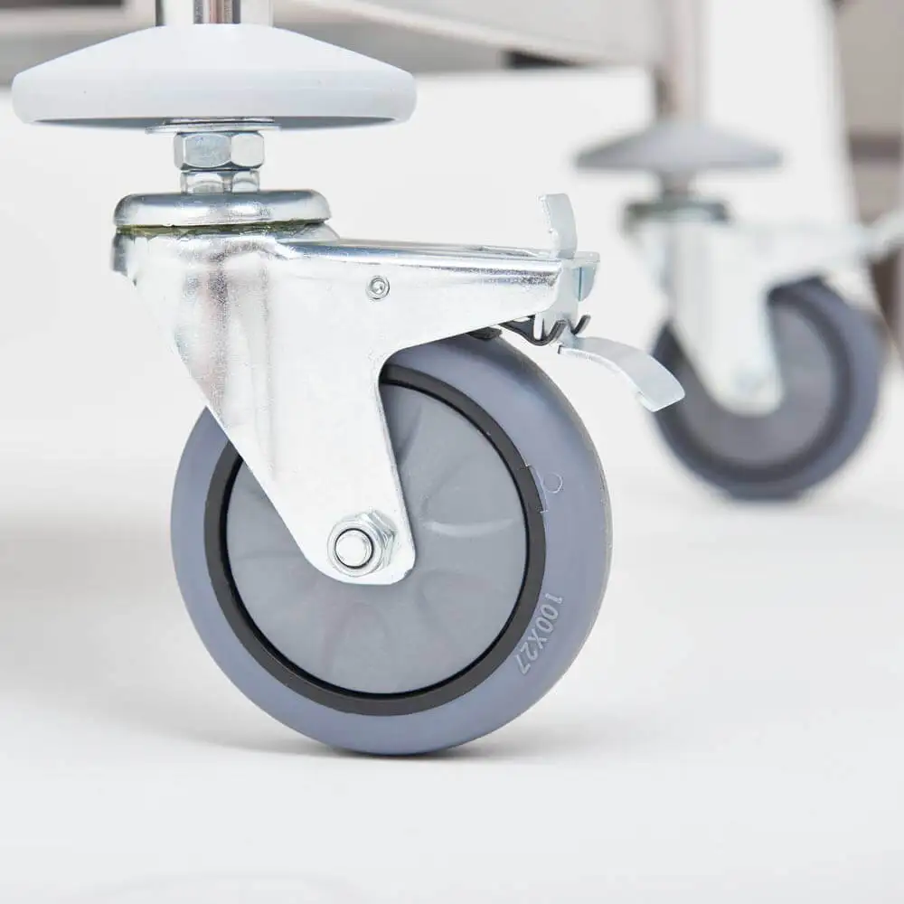 Cărucior ospătar din oțel inoxidabil fără mânere, înșurubat, cu 2 rafturi, plat