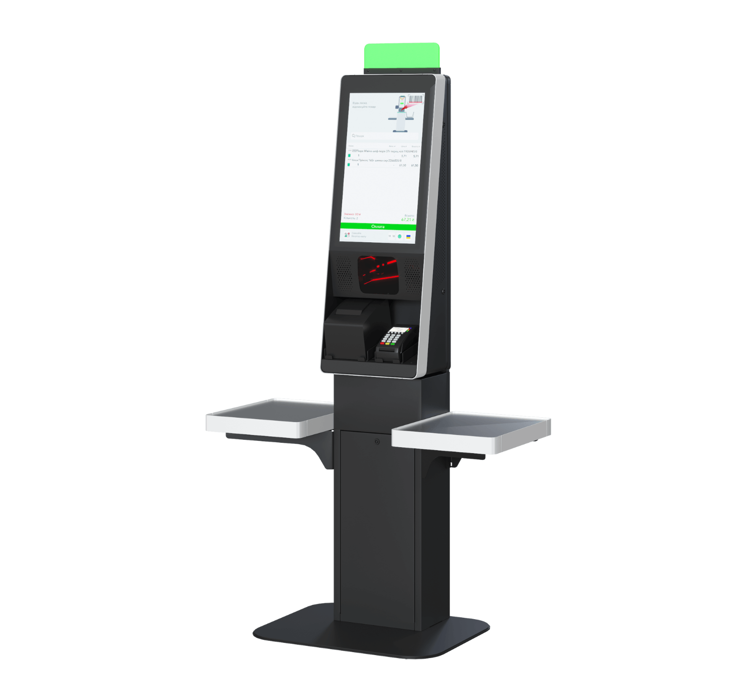 Echipamentul suportă integrarea cu sistemele de casă, plata fără numerar, plăți în numerar, coduri QR și carduri bancare, ceea ce face terminalul de autoservire o soluție universală pentru punctele de retail. Terminalul POS optimizează spațiul, este durabil și este potrivit pentru magazine mici și medii, retail în rețea, minimarketuri, farmacii și centre de servicii.