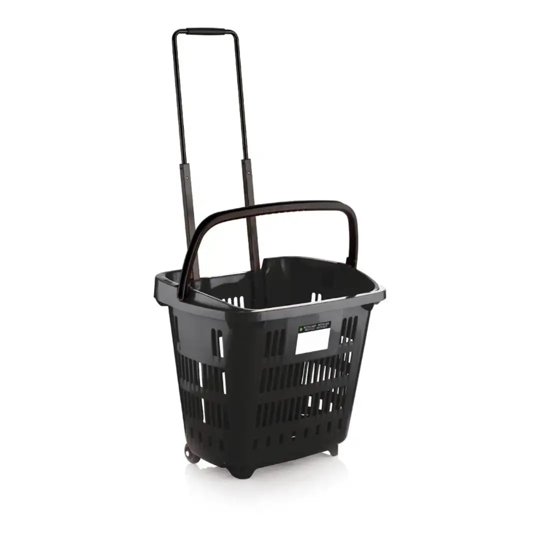 Coșul din plastic cu roți și mâner telescopic (34–45 litri) este soluția ideală pentru cumpărături confortabile și eficiente în supermarketuri, minimarketuri sau magazine specializate.