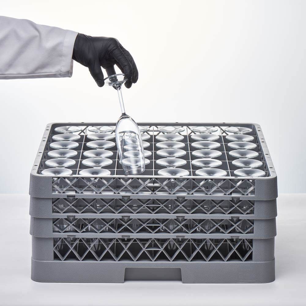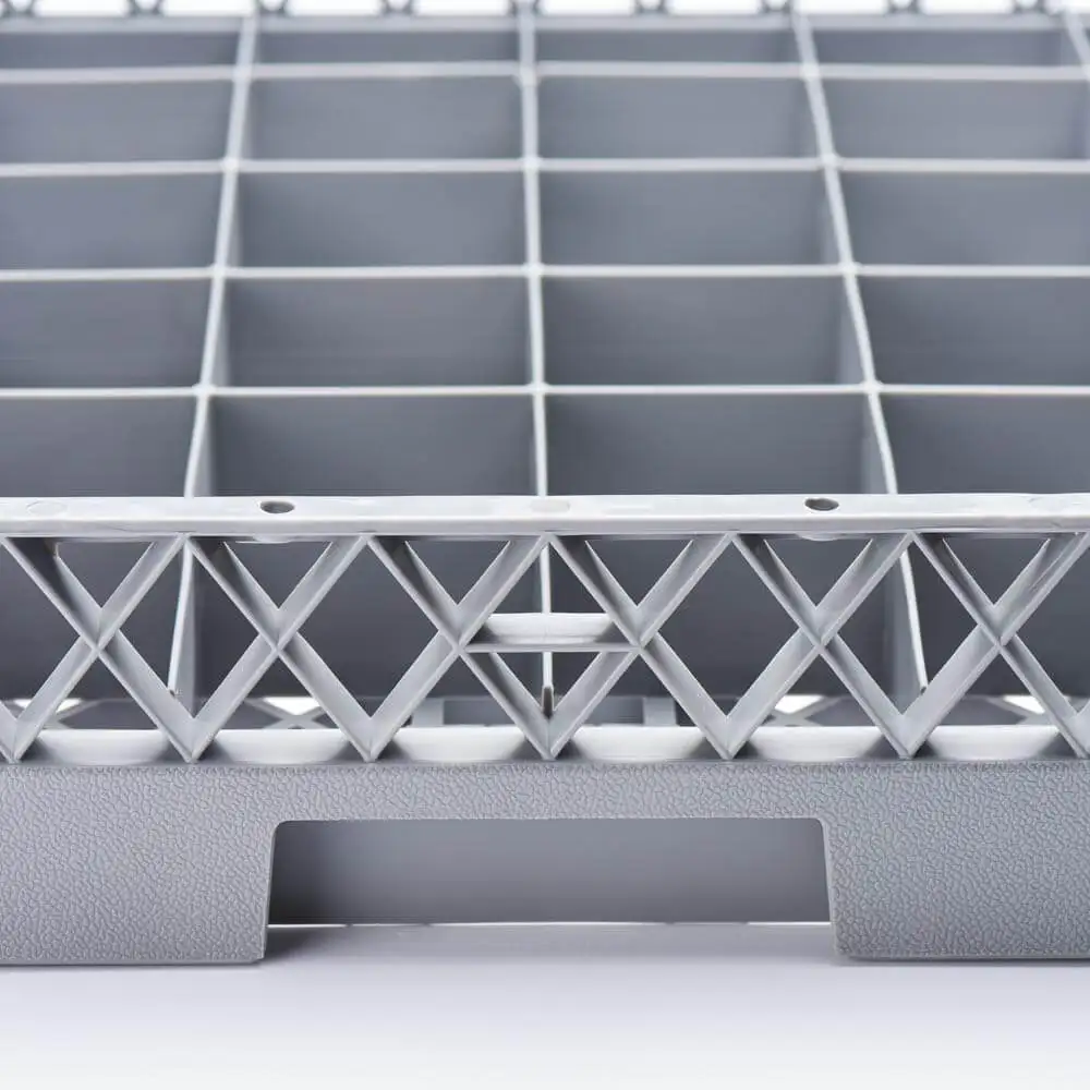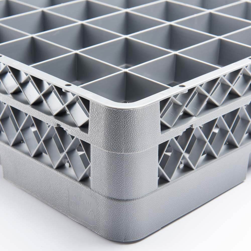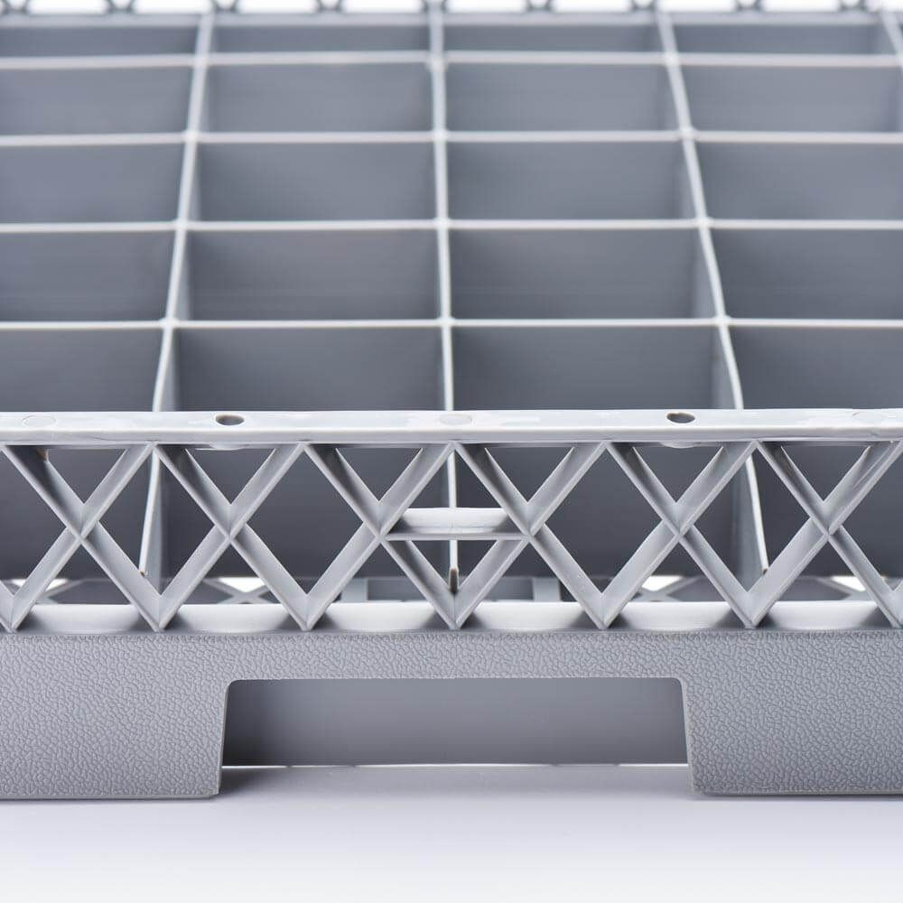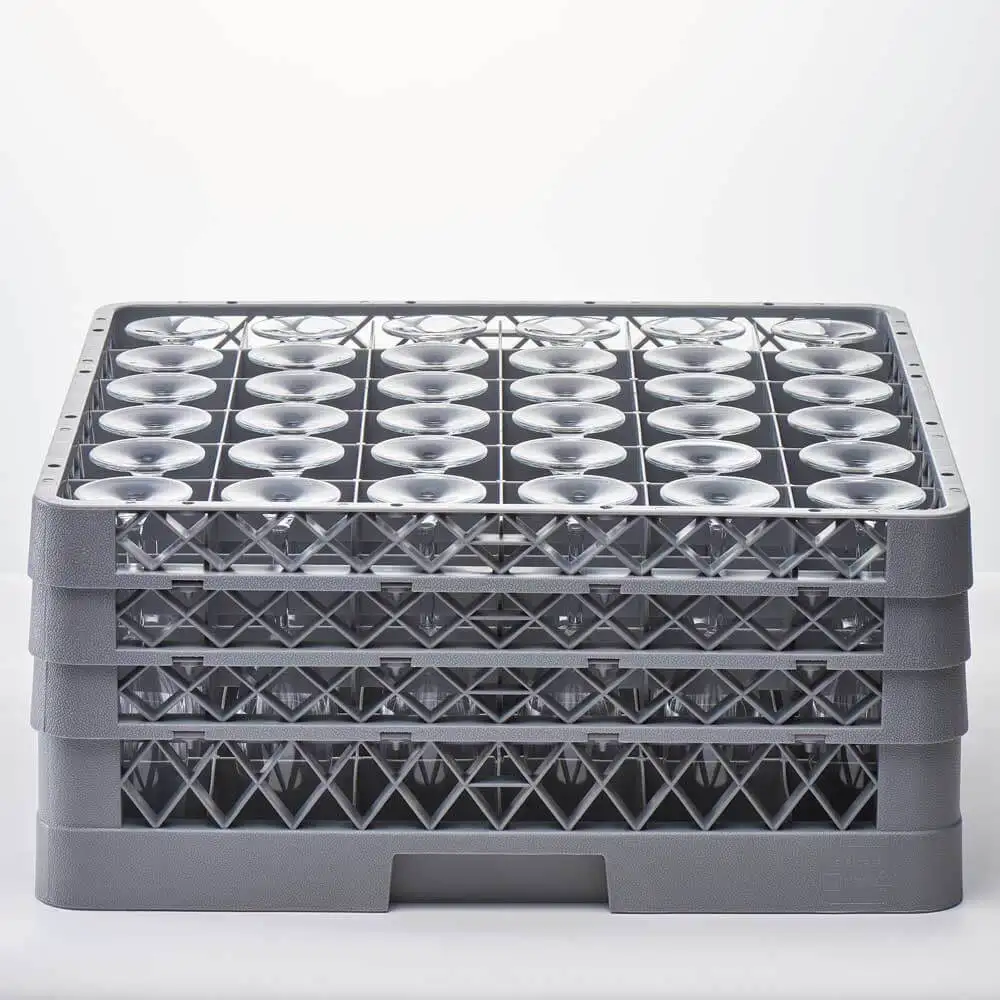 Coș pentru mașină de spălat vase, 36 bucăți, conceput pentru spălarea eficientă și sigură a paharelor sau a altor articole de dimensiuni similare în echipamente profesionale HoReCa. Structura cu 36 compartimente individuale permite poziționarea stabilă a fiecărui element, reducând riscul de lovire și spargere în timpul ciclului de spălare.